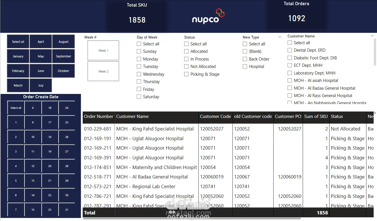 تحليل اوردرات شركة نوبكو السعودية من حيث عدد الاوردرات وعدد القطع وتصنيف نوع الاوردر حسب رقم العميل ربط جدول الاوردرات اليومي بجدول الاوردرات الكلي من الداتا بيز تنظيف البيانات وترتيبها داش بورد ديناميكية تستخدم فيي اليوم 3 مرات عن طريق تحديث الداتا فقط دون اي تدخل