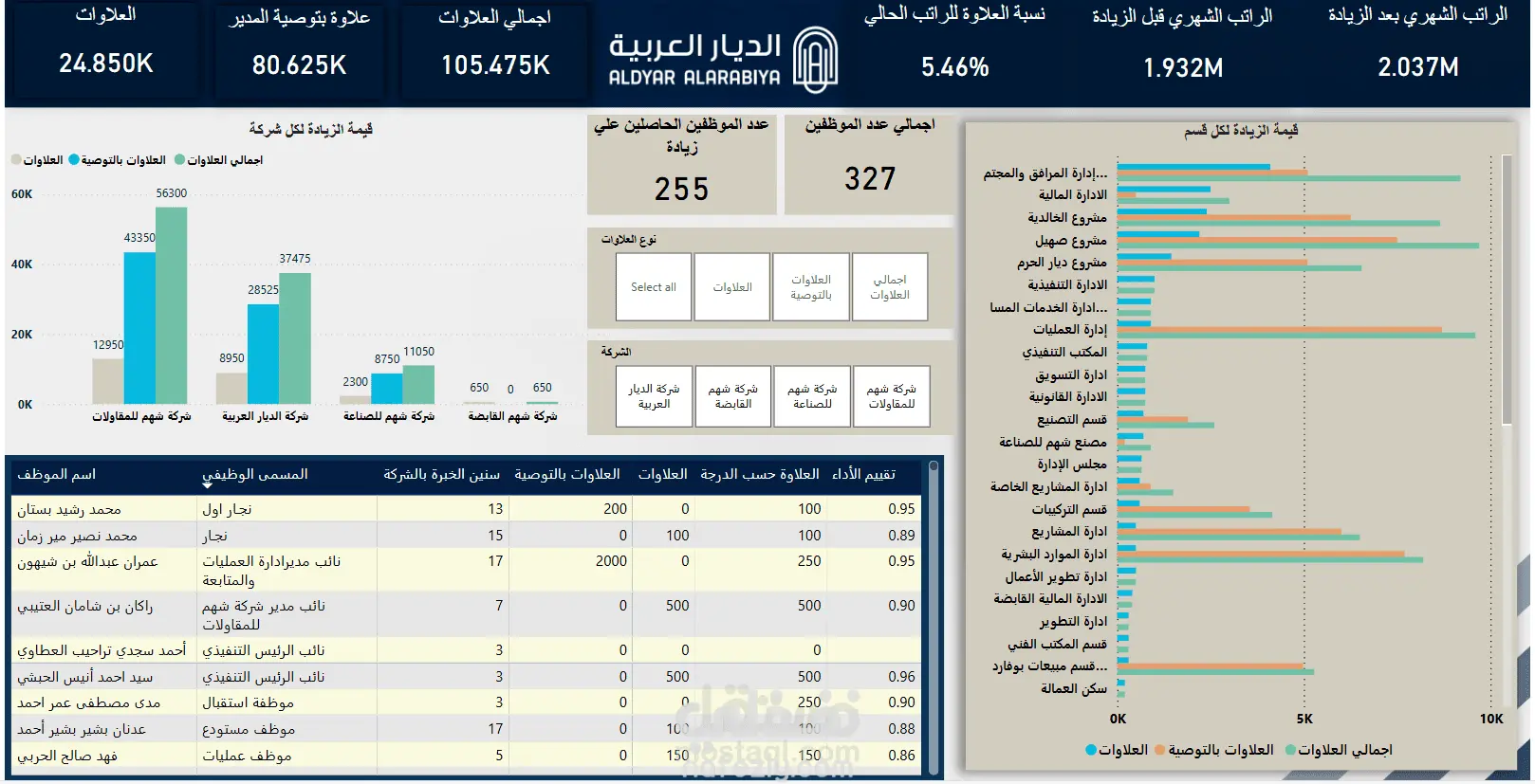 -تحليل بيانات الموظفين في شركة الديار العربية واضافة العلاوات بناءً علي التوصية و تقييم الاداء - تحليل بيانات الموظفين الذي تم انهاء خدمتهم