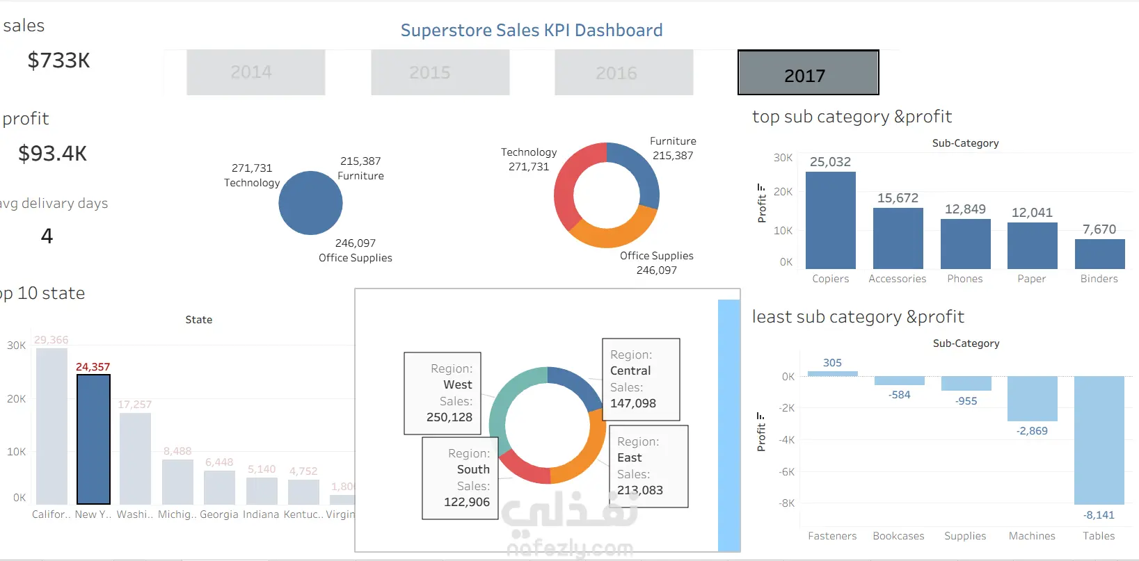 في هذا المشروع قمتُ بتصميم وبناء لوحة تحكم تفاعلية (Super Store Dashboard) تعتمد على بيانات المبيعات الخاصة بمتجر التجزئة. بدأتُ أولاً بتنظيف البيانات ومعالجة القيم المفقودة وتوحيد تنسيقات التواريخ والأصناف لضمان دقة التحليل. بعد ذلك نفذتُ عملية تحليل استكشافي للبيانات لفهم أنماط المبيعات والربحية عبر المناطق الجغرافية، والفئات، وفئات العملاء.