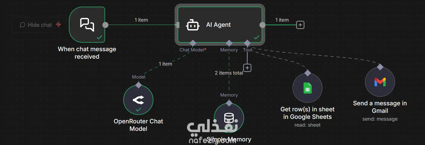 بناء وكيل ذكاء اصطناعي (AI Agent) لأتمتة المهام وربط البيانات مع Gmail و Google Sheets