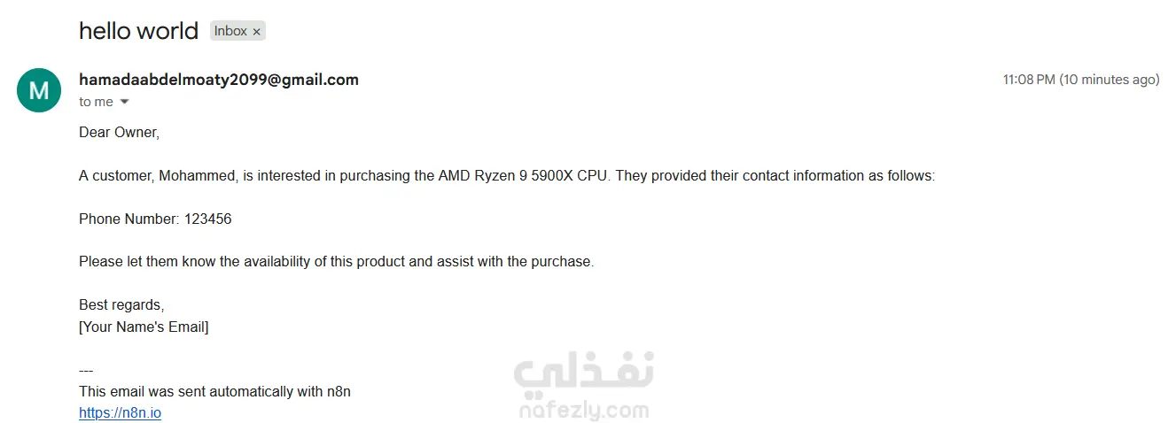وصف المشروع: قمت بتطوير نظام أتمتة متكامل (AI Automation Workflow) باستخدام منصة n8n، يعمل كوكيل ذكاء اصطناعي (AI Agent) قادر على فهم الأوامر، استرجاع البيانات، واتخاذ الإجراءات بشكل آلي. ما يقوم به هذا النظام: 1.واجهة محادثة ذكية: يستقبل النظام المدخلات عبر واجهة تشات (Chat Interface). 2.الذاكرة والسياق (Memory): النظام مزود بذاكرة (Simple Memory) تمكنه من تذكر سياق المحادثة السابقة لتقديم ردود دقيقة ومترابطة. 3.الذكاء الاصطناعي (LLM): يعتمد على نماذج ذكاء اصطناعي متطورة (عبر OpenRouter) لفهم طلب المستخدم وتحليله. 4.الربط مع قواعد البيانات (Google Sheets): يمتلك القدرة على البحث داخل ملفات Google Sheets، قراءة البيانات، أو تحديثها بناءً على طلب المستخدم. 5.إرسال البريد الإلكتروني (Gmail): يمكن للوكيل الذكي صياغة وإرسال رسائل بريد إلكتروني تلقائياً بناءً على المعلومات التي جمعها أو الأوامر التي تلقاها. الأدوات والتقنيات المستخدمة: n8n: لبناء وتنسيق سير العمل (Workflow Orchestration). OpenRouter / AI Models: لمعالجة اللغة الطبيعية واتخاذ القرارات. Google Sheets Integration: لإدارة البيانات. Gmail Integration: لإدارة المراسلات. قيمة هذا المشروع: هذا النظام يوفر ساعات طويلة من العمل اليدوي، حيث يمكنه العمل كموظف خدمة عملاء، أو مساعد شخصي يقوم بجدولة المواعيد، الرد على الاستفسارات من قاعدة البيانات، وإرسال التقارير عبر الإيميل بشكل أوتوماتيكي بالكامل.