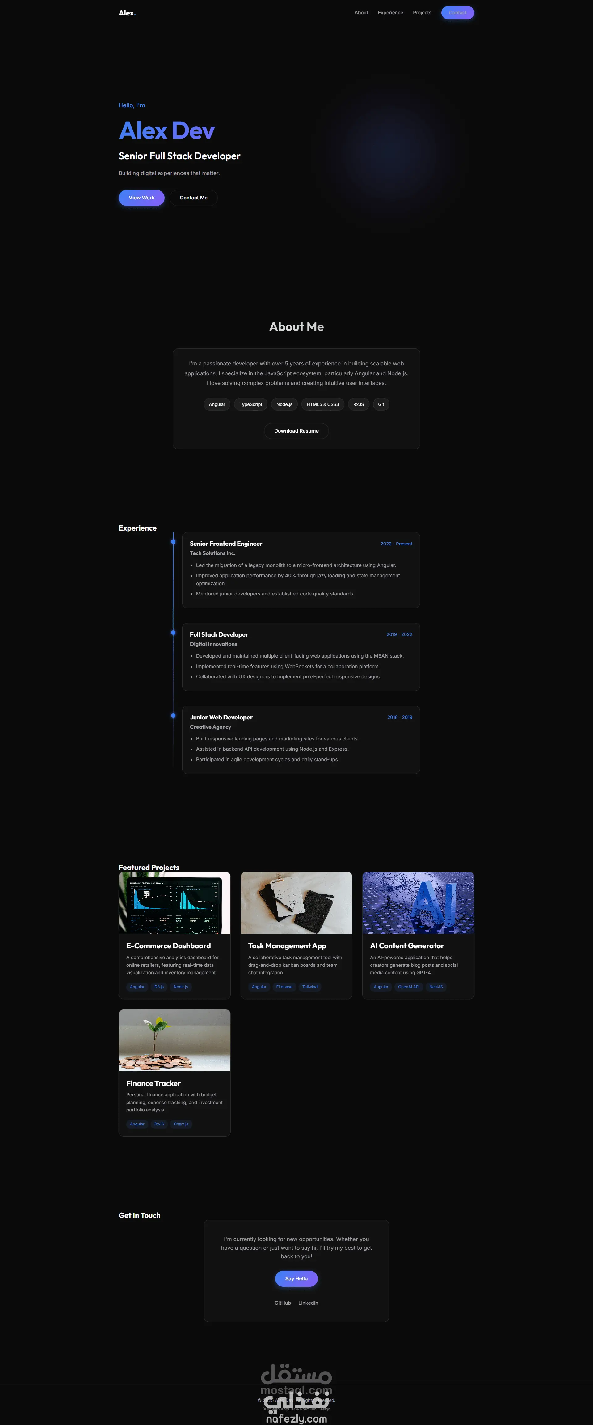 موقع بورتفوليو تفاعلي مبني باستخدام Angular بتصميم احترافي