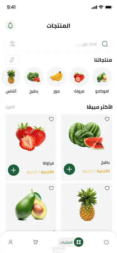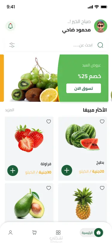 تطبيق تجارة إلكترونية متخصص في بيع الفواكه الطازجة، مبني بالكامل باستخدام Flutter ويدعم Clean Architecture لتقديم تجربة شراء سلسة وسريعة. أبرز المميزات تسجيل دخول آمن عبر Email/Password – Google – Facebook Onboarding بسيط وسريع للمستخدمين الجدد استكشاف المنتجات، أفضل المبيعات، والبحث داخل الكتالوج صفحة تفاصيل كاملة: السعر – الوصف – التقييم – العناصر الغذائية سلة مشتريات مع تعديل الكميات وحساب السعر الإجمالي Favorites لحفظ المنتجات إدارة حساب المستخدم دعم لغتين: العربية (افتراضي) والإنجليزية التقنيات المستخدمة Flutter State Management: BLoC / Cubit Firebase Auth + Firestore للسلة والمفضلة dio + ApiService للاتصال بالـ API get_it للـ Dependency Injection hive_flutter للتخزين المحلي واجهة مستخدم احترافية مع salomon_bottom_bar + smooth_page_indicator القيمة المشروع يقدّم تجربة متجر إلكتروني كاملة ببنية منظمة وقابلة للتوسع، مع دمج Firebase وواجهة استخدام مرنة وسريعة.