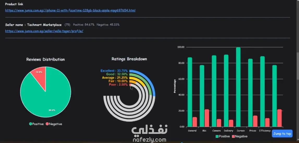 Tech Tracker هو منصة ذكية هدفها تحسين تجربة التسوّق أونلاين عن طريق جمع المنتجات من منصات مختلفة وتحليلها باستخدام تقنيات الذكاء الاصطناعي. المشروع بيعالج مشكلة إن المستخدم بيضطر يدخل على مواقع كتير يقارن بين الأسعار والجودة والريفيوهات، فبدل ده المنصة بتجمع كل حاجة في مكان واحد وتعرضها بشكل منظم وواضح. 1. تجميع المنتجات من مواقع مختلفة (Product Aggregation) المنصة بتعمل Web Scraping و APIs علشان تسحب بيانات المنتجات من أكتر من متجر إلكتروني، وبعدها بتوحد شكل البيانات كله في صيغة واحدة جاهزة للمعالجة. 2. مطابقة المنتجات المتشابهة (Product Matching Model) بيتم بناء موديل Machine Learning يقدر يتعرف على إن المنتج ده هو نفسه المنتج الموجود على متجر تاني، حتى لو الاسم مختلف شوية أو الوصف طويل. ده بيساعد المستخدم يشوف كل الأسعار لكل منتج من كل موقع في نفس الصفحة. 3. تحليل مشاعر الريفيوهات (Sentiment Analysis) المنصة بتحلل آلاف الريفيوهات باستخدام NLP علشان تحدد الشعور العام: إيجابي سلبي محايد ده بيوضح للمستخدم هل الناس راضيين فعلًا عن المنتج ولا لأ. 4. تحليل الجوانب (Aspect-Based Sentiment Using LDA) هنا المنصة مش بس بتحلل الشعور، لكنها بتفصل كل جانب من جوانب المنتج: جودة التصنيع السعر سرعة التوصيل التغليف خدمة العملاء وتوضح تقييم العملاء لكل جانب بشكل مستقل. 5. تلخيص ذكي للريفيوهات (Generative AI Summary) بيتم استخدام Generative AI علشان يعمل تلخيص احترافي للـ reviews ويعرض للمستخدم أهم النقاط في ثواني بدل ما يقرا 200 تعليق. 6. واجهة سهلة الاستخدام (Frontend - React) تصميم بسيط وواضح يعرض: المنتج الأسعار من كل موقع الملخص تحليل الجوانب نسبة المشاعر 7. بنية تقنية قوية (Tech Stack) Python – تحليل البيانات وذكاء اصطناعي TensorFlow / Keras – نماذج ML وDL React – واجهة المستخدم Node.js / Python API – الربط بين الواجهة والموديل SQL Server – تخزين البيانات Selenium / BeautifulSoup – Web Scraping