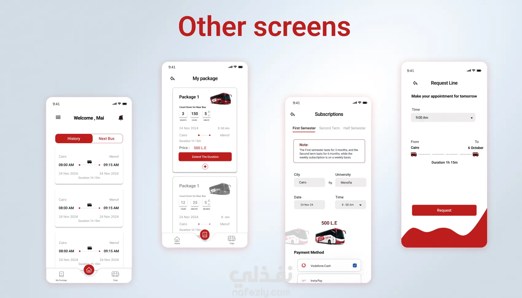 تصميم واجهة مستخدم وتجربة مستخدم (UI/UX) لتطبيق حجز مقاعد الأتوبيسات وتحديد وجهة الرحلة
