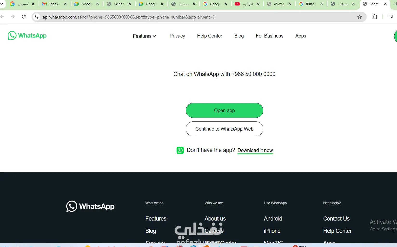 صفحة نواصل عبر الواتساب لموقع ويب