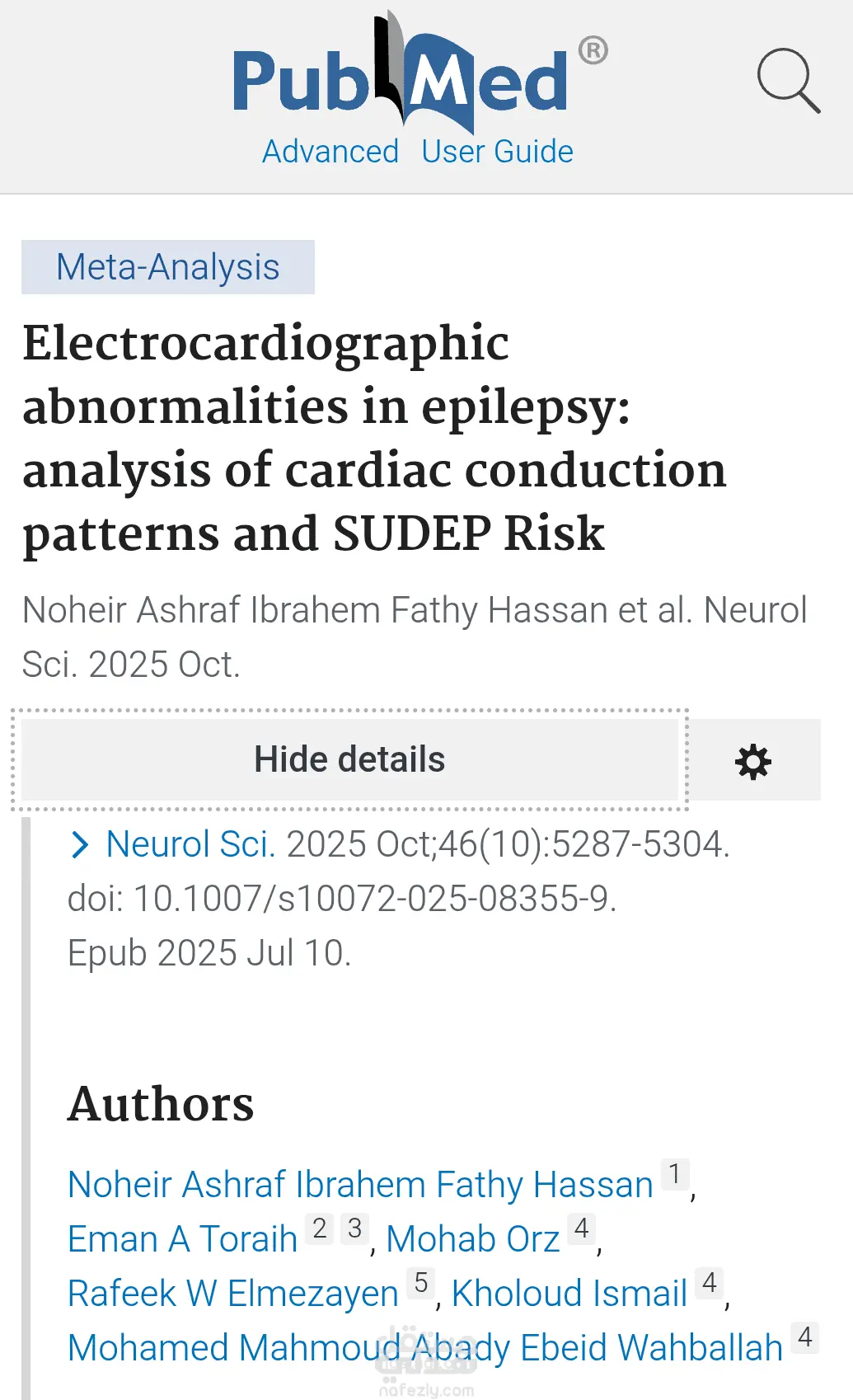 نشر ورقه بعنوان Electrocardiographic abnormalities in epilepsy: analysis of cardiac conduction patterns and SUDEP Risk