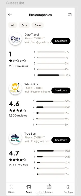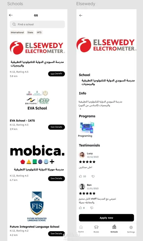 اعتمدت في التصميم على دراسة تجربة المستخدم، وترتيب المعلومات بشكل واضح ومنظّم، مع واجهة بسيطة وسهلة التعامل لتناسب جميع الفئات. كما شملت التجربة تصميم خاصية التقديم لشركات النقل المدرسي بعد قبول الطالب، مما يعزّز من قيمة التطبيق ويوفّر حلًا متكاملًا للعميل.