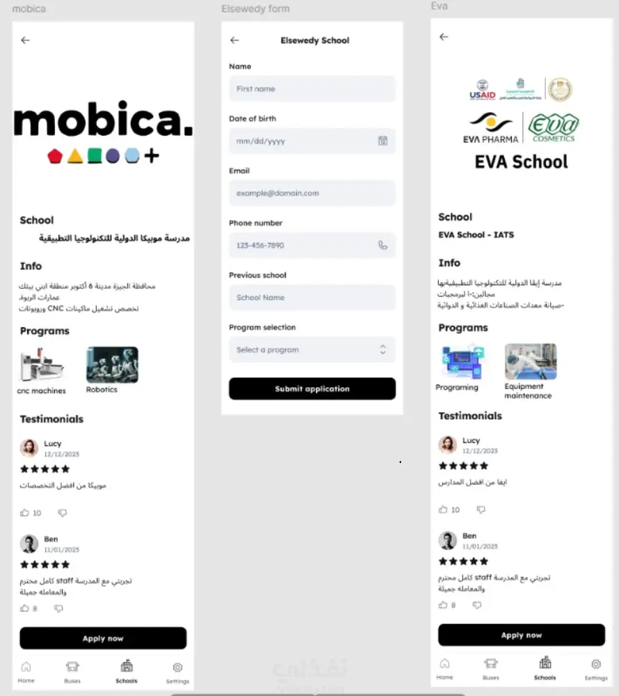 قمت بتنفيذ تصميم UI/UX احترافي لأحد العملاء لتطبيق يهدف إلى جمع جميع مدارس الجيزة في منصة واحدة تُسهّل على الطلاب وأولياء الأمور الوصول للمعلومات المهمة مثل: المصروفات، المستندات المطلوبة، مميزات كل مدرسة، وإتمام عملية التقديم إلكترونيًا بدون تعقيد.