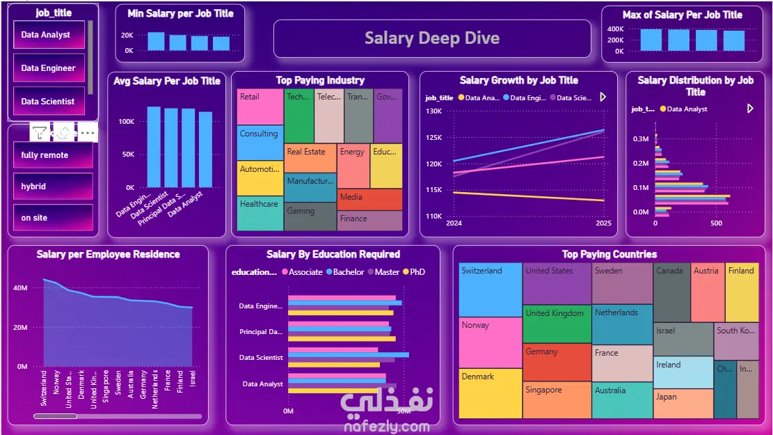داش بورد بأستخدام power bi لتحليل متوسط المرتبات لعدة وظائف