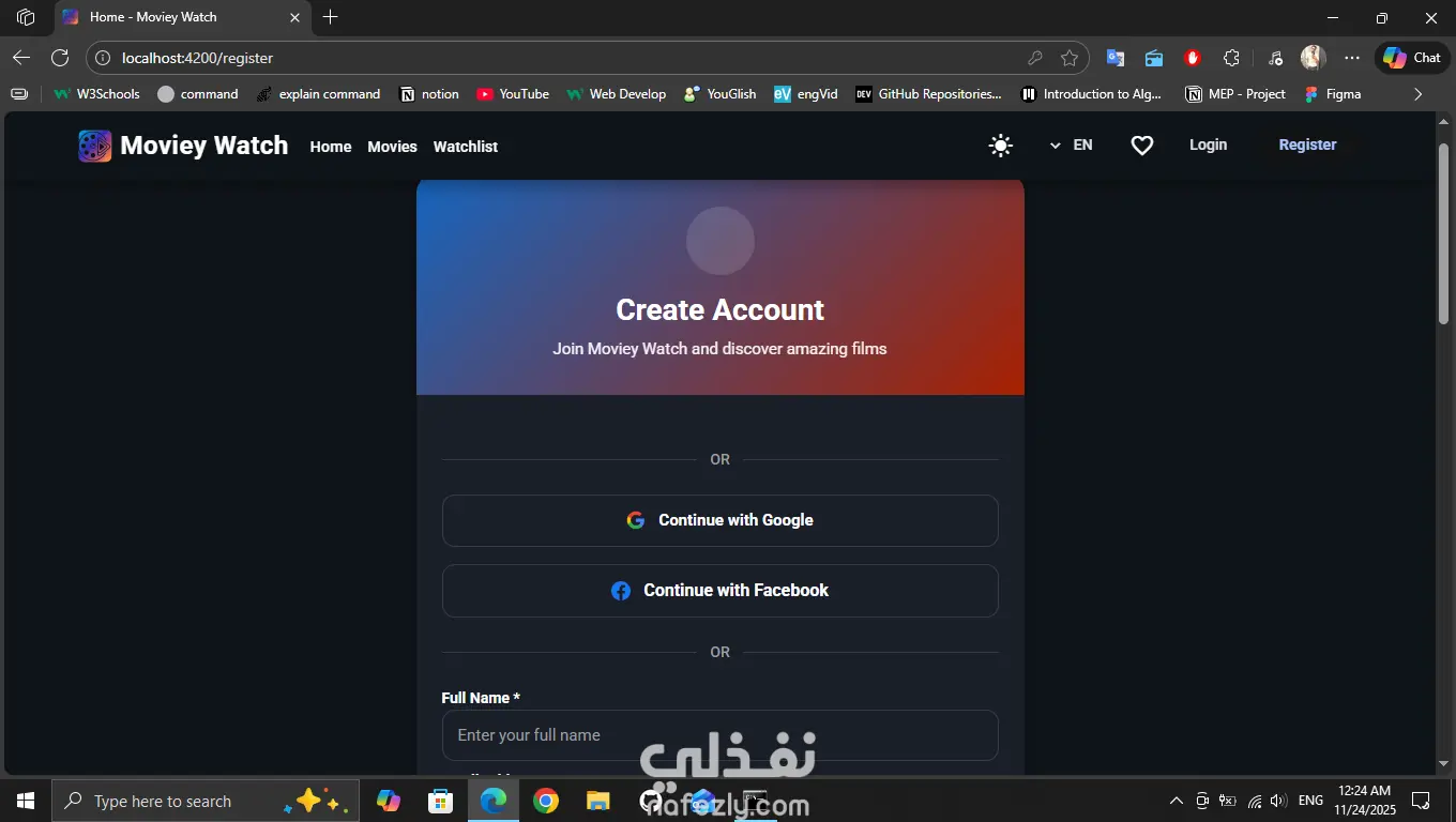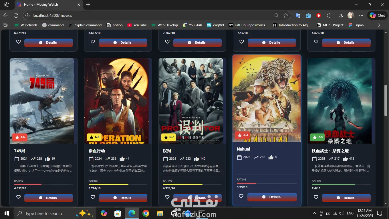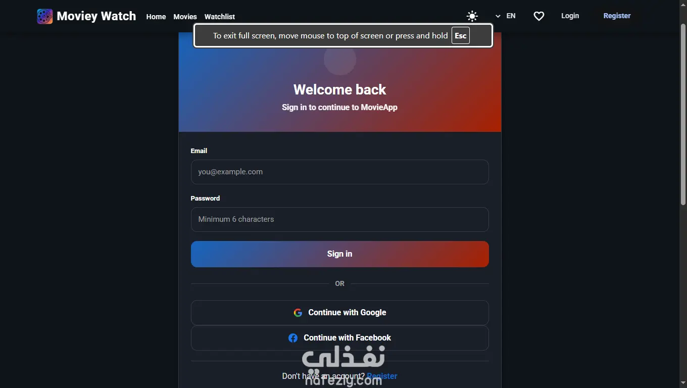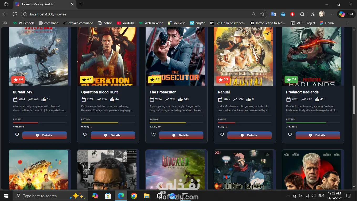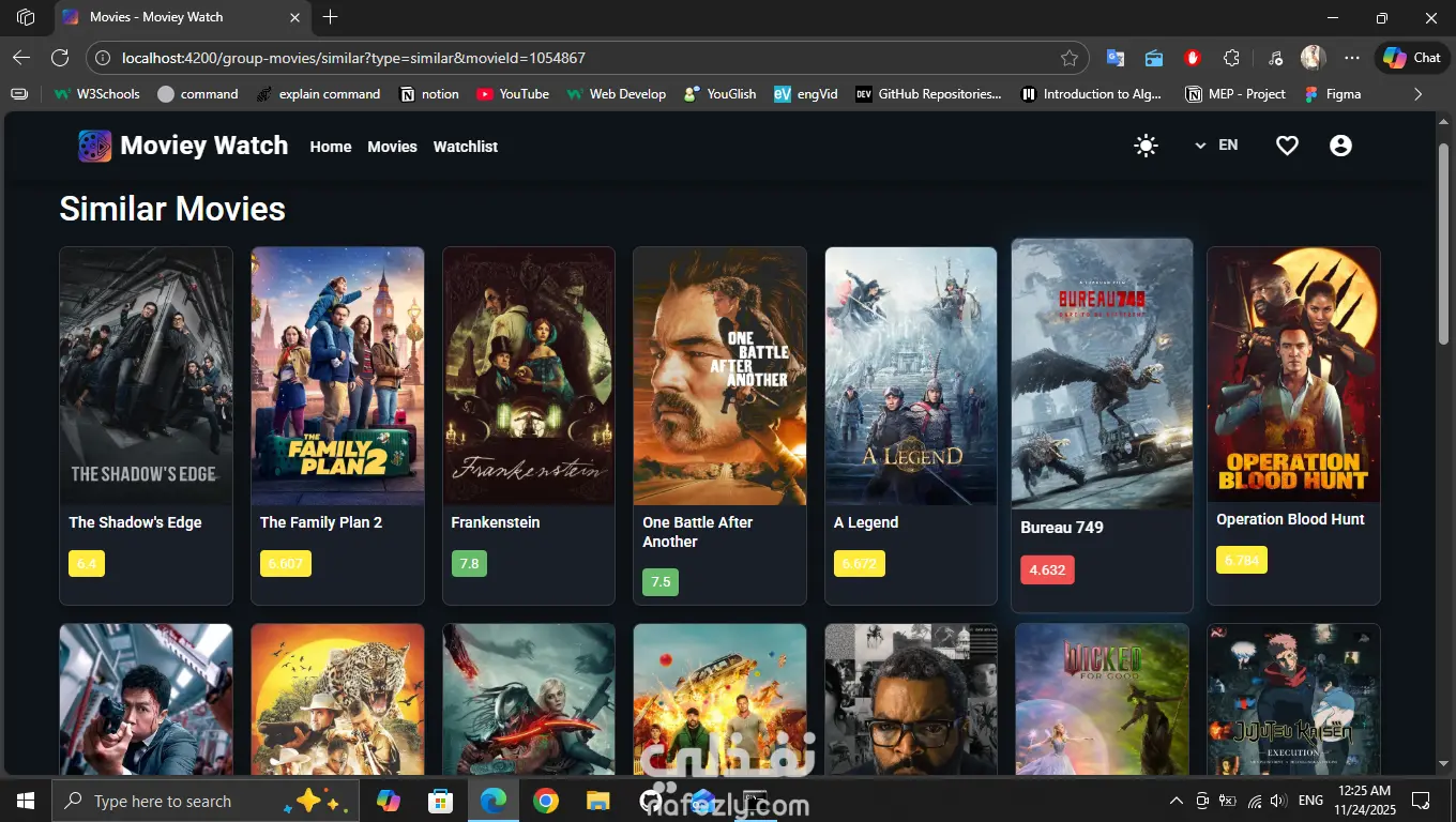 Moviey Watch – A responsive Angular movie hub using TMDB & Firebase, featuring trailers, detailed movie info, and a personal watchlist with light/dark theme support.