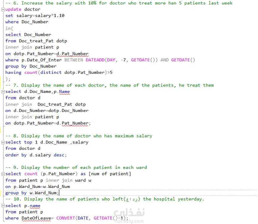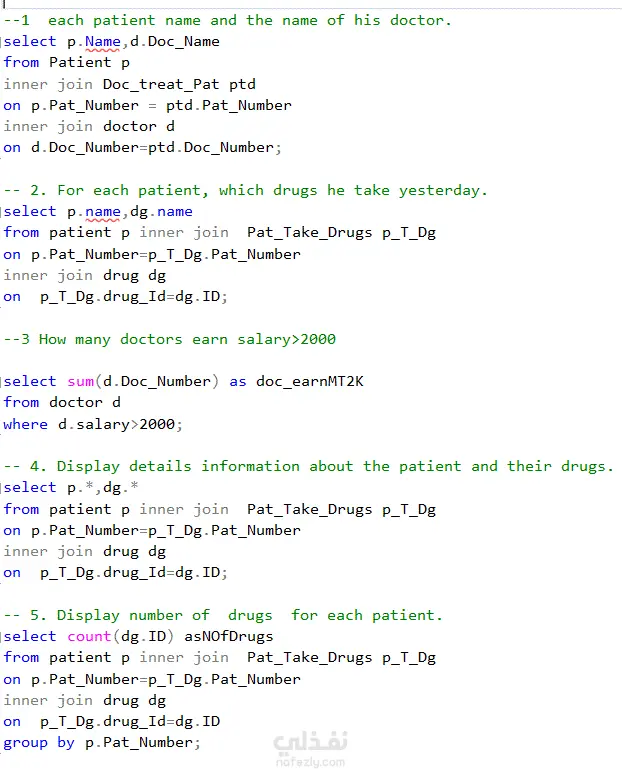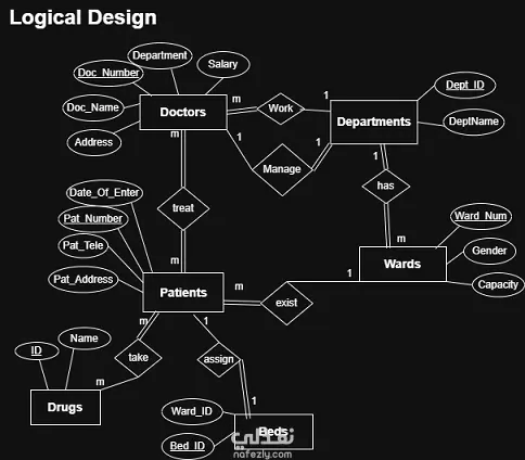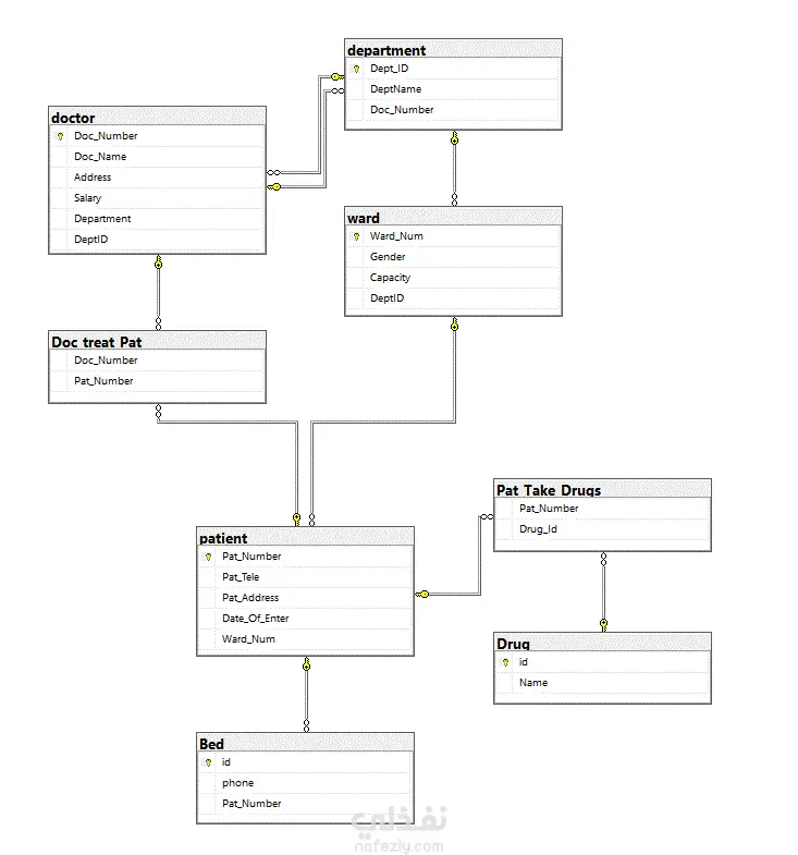 تاسك تصميم قاعدة بيانات لمستشفي للتمريني اكتر علي هذة المهارة