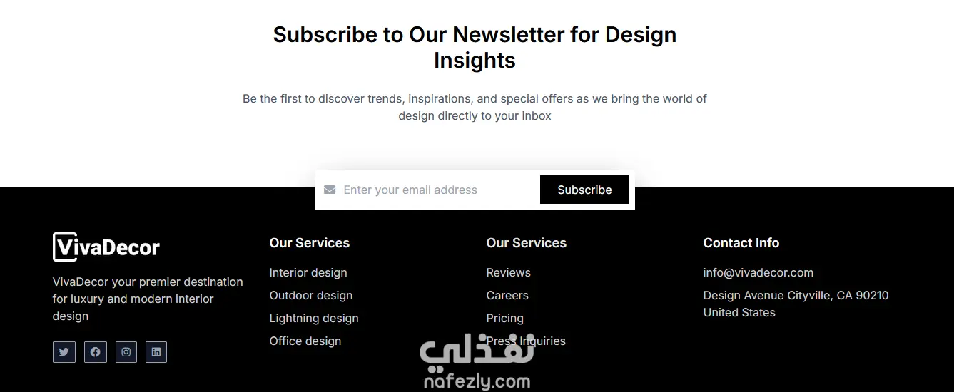 تصميم وتطوير صفحة هبوط مخصّصة لخدمات التصميم الداخلي والديكور، تتميز بشكل عصري وأنيق يبرز العلامة التجارية ويحفّز العميل على التواصل وطلب الخدمة.