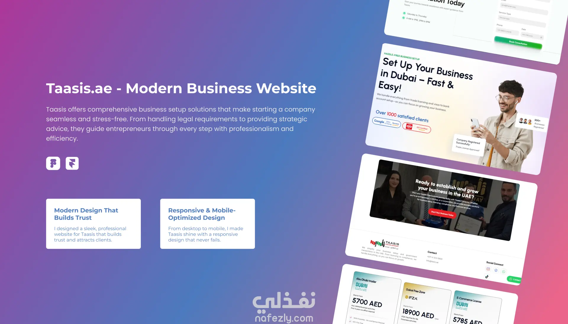 تصميم وتطوير (Framer) لموقع "تأسيس" - حلول أعمال إماراتية ونمو عبر SEO