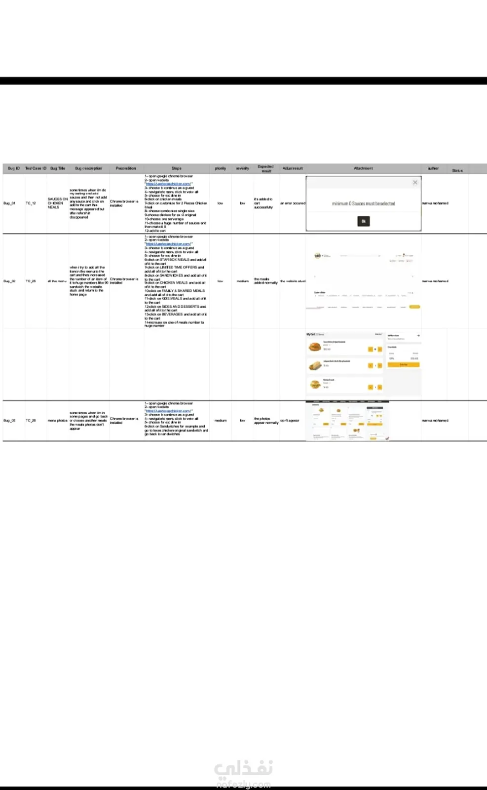 عمل اختبار يدوى لكل الويبسايت بكل مافى و كتابة test cases و عمل bug report بكل تفاصيلاهم