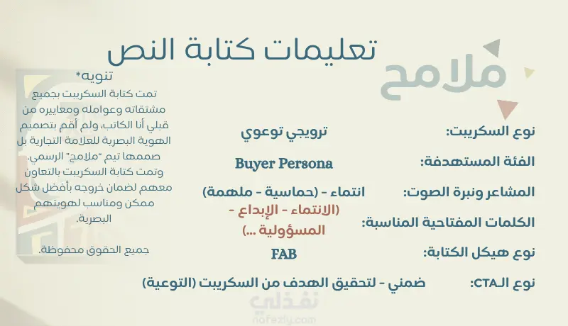 إنجاز سكريبت ترويجي متوسط الطول لعلامة ملامح التجارية