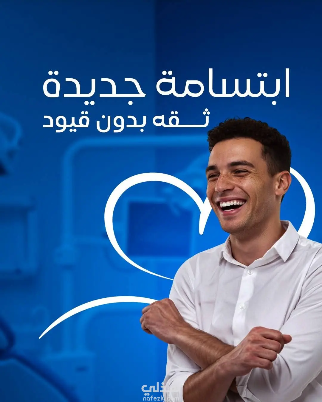في تصميمات الأسنان، استخدمت عنصر "القلب" المرسوم بخط انسيابي ليربط بين العناية الطبية والحب/الثقة بالنفس.