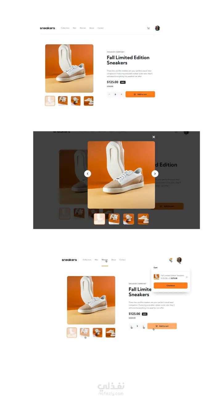 قمت بتطوير واجهة مستخدم كاملة لمتجر إلكتروني لبيع الأحذية باستخدام React مع تصميم حديث ومتجاوب يعمل بسلاسة على جميع الأجهزة. أهم المميزات: صفحة رئيسية تعرض أحدث العروض والمنتجات. صفحة منتجات بفلترة حسب المقاس، اللون، السعر، ونوع الحذاء. صفحة تفاصيل المنتج تحتوي على معرض صور، وصف المنتج، السعر، والمراجعات. كارت الشراء Shopping Cart مع إمكانية الإضافة والتعديل والحذف. نظام تسجيل الدخول وإنشاء حساب (UI فقط – أو اذكر إذا كان مربوط بباك إند/Firebase). تصميم UX/UI احترافي باستخدام Bootstrap / Tailwind (اختار اللي استخدمته). تجربة مستخدم سلسة وسريعة، مع animations بسيطة. المشروع متجاوب بالكامل (Responsive) للكمبيوتر والموبايل. التقنيات المستخدمة: HTML5, CSS3, JavaScript React Tailwind Firebase لتسجيل الدخول (إن استخدمته) نتيجة العمل: متجر إلكتروني جاهز للاستخدام، منظم، وقابل للإضافة والتطوير، مناسب للشركات الناشئة والمتاجر الصغيرة والمتوسطة اللي عاوزة واجهة احترافية لمنتجاتها.