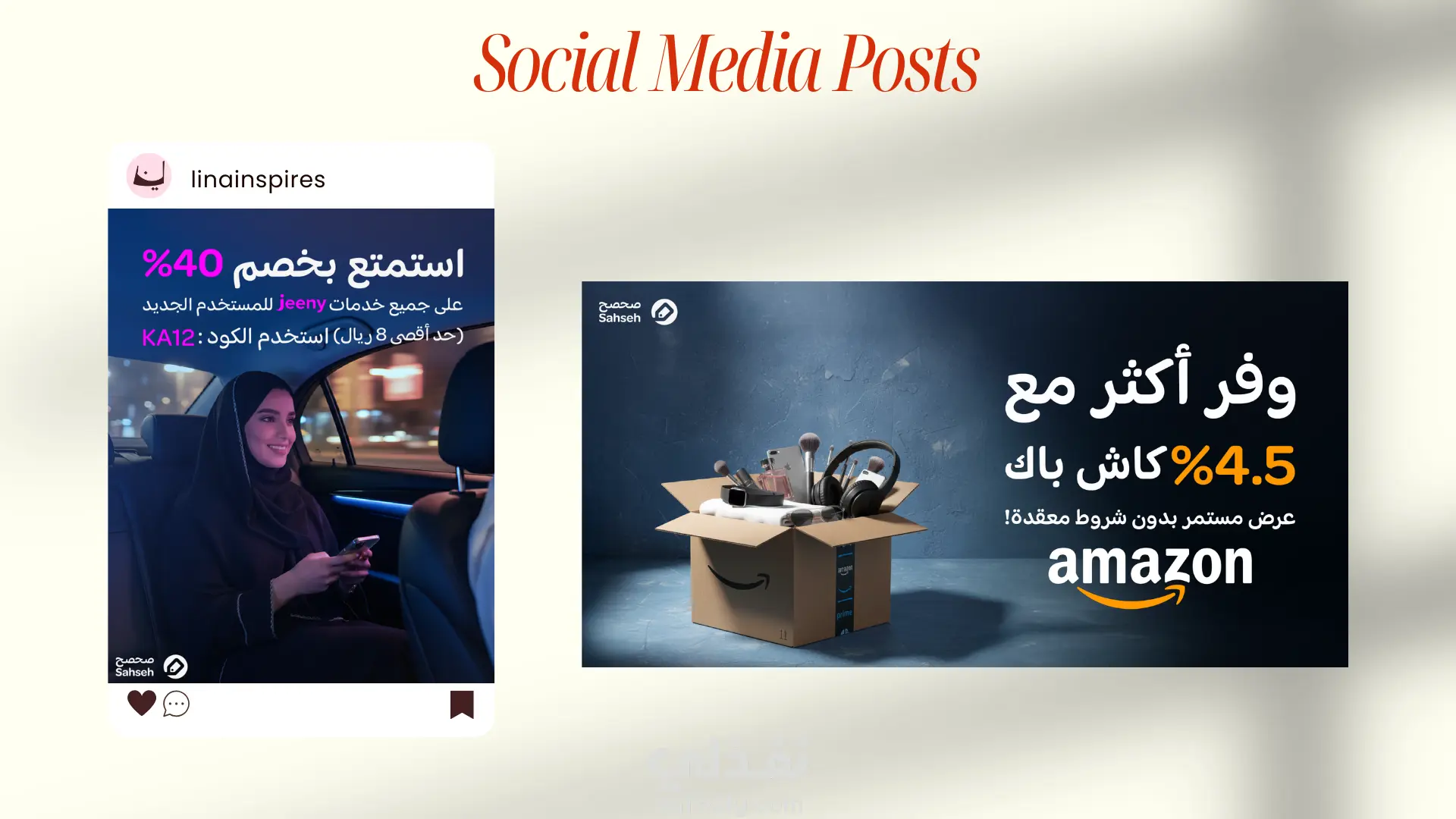 تشمل الأعمال بوستات ثابتة وكروسل، بجودة عالية وجاهزة للنشر على مختلف المنصات.