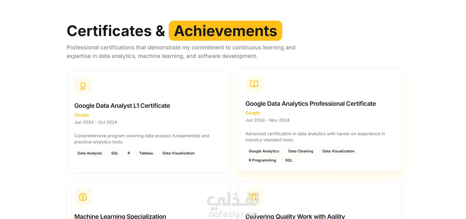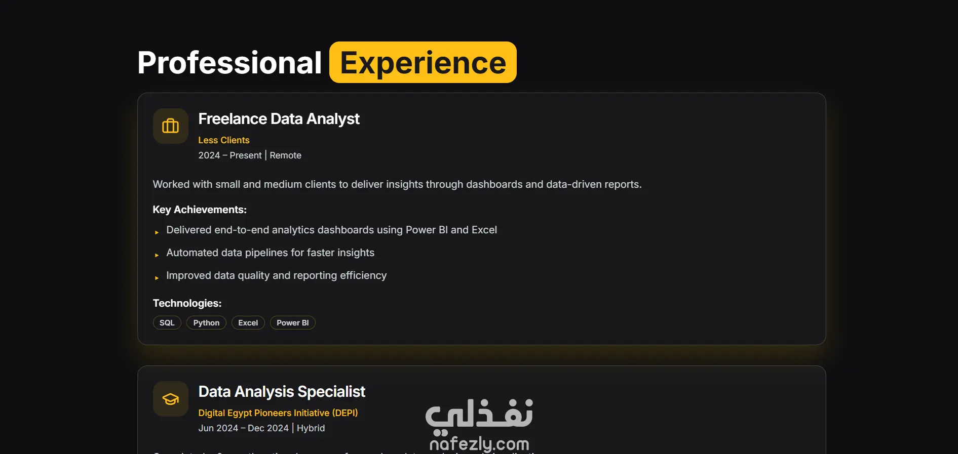 - أسلوب تصميم حديث ومناسب لمعايير البورتفوليو العالمية.