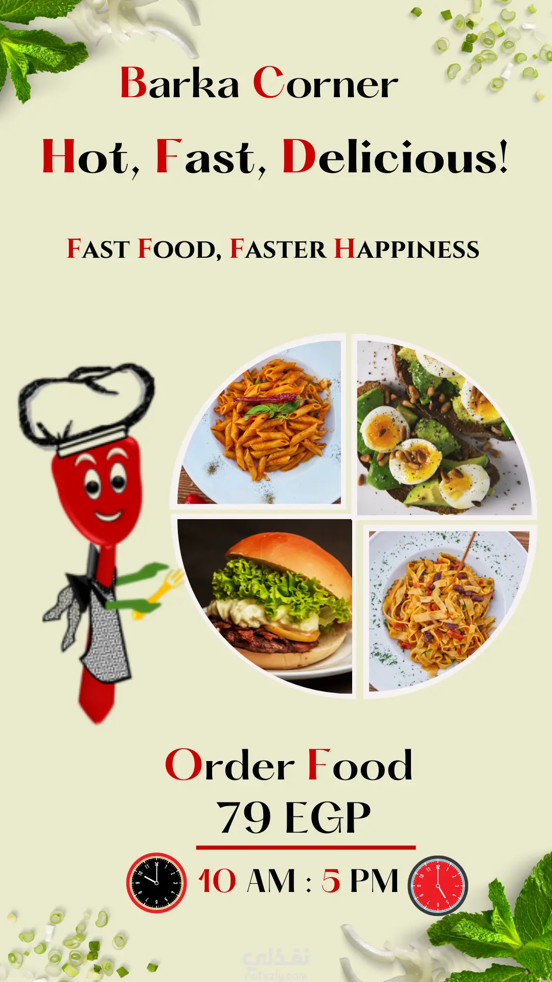 تصميم البوست واللوجو لصفحة لتقديم الاكلات السريعة