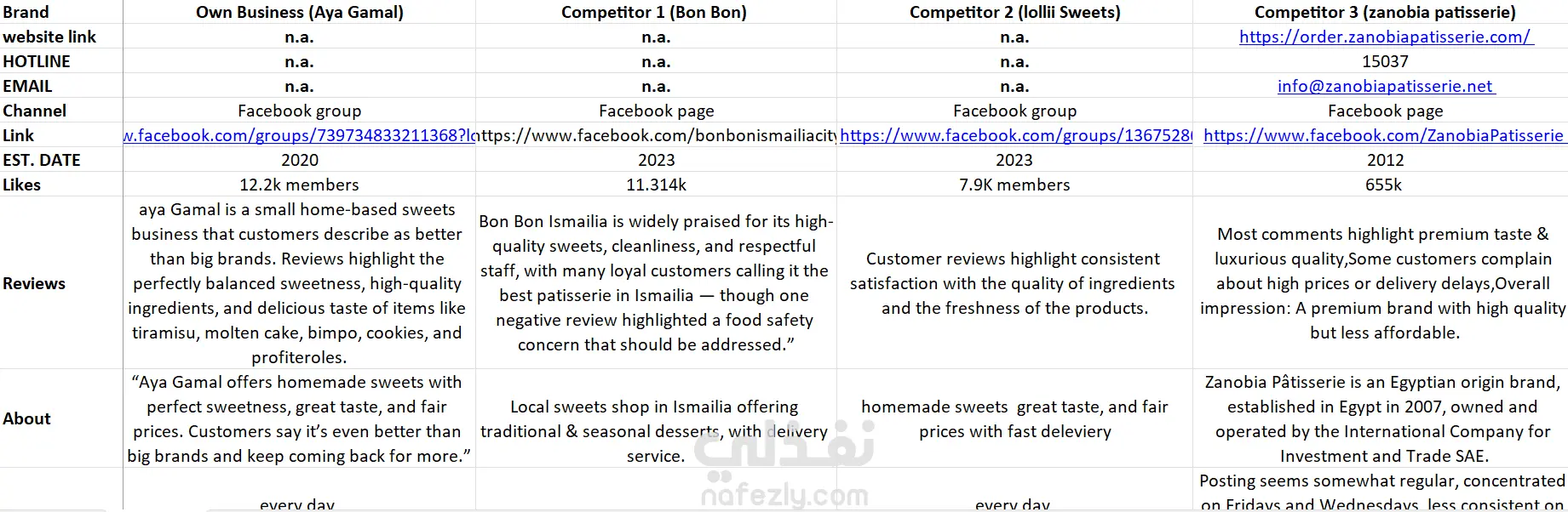 تحليل منافسين لمحل حلويات علي فيس بوك
