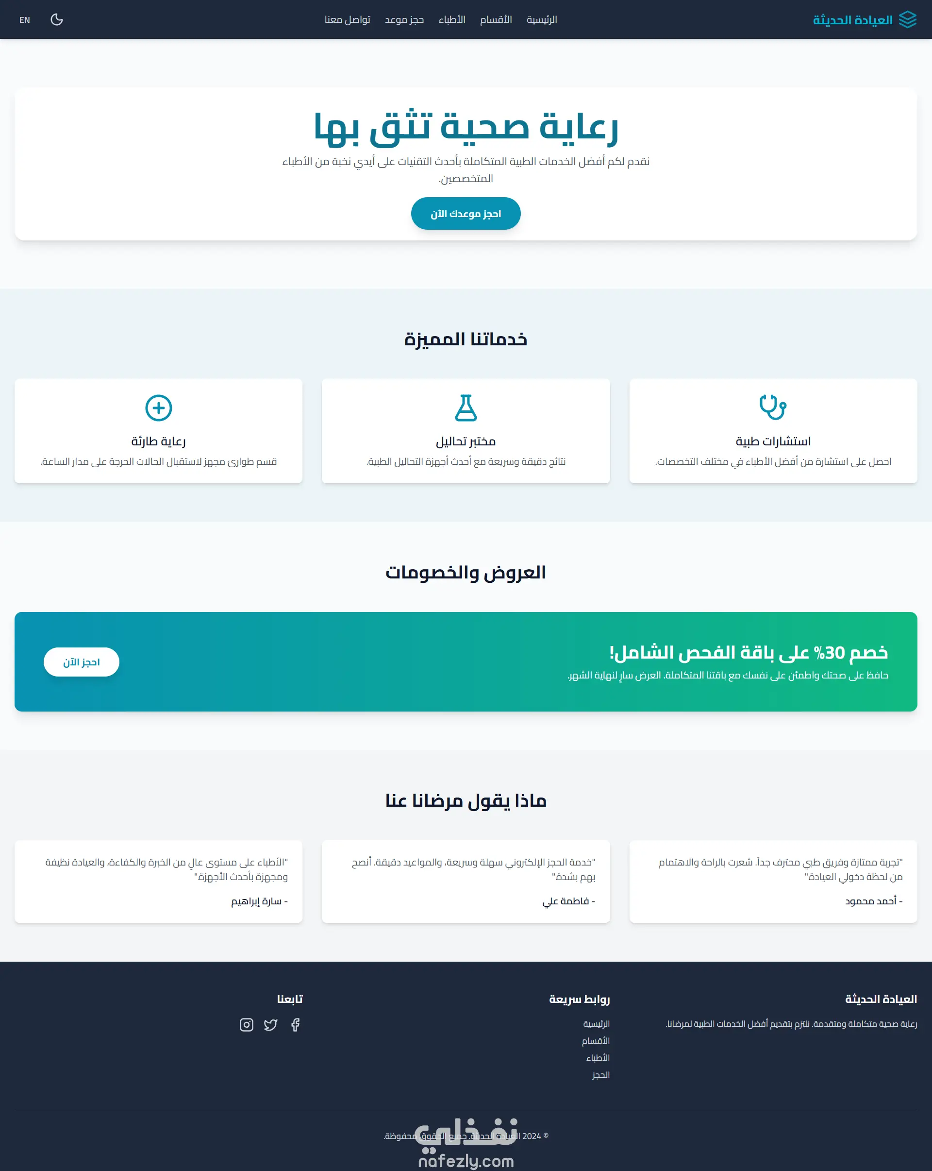 مرحبًا، أنا حازم أحمد سليمان، مطور ويب Fullstack .NET. في هذه الخدمة سأقوم بتصميم وتطوير موقع عيادة طبية احترافي، مناسب لعرض الخدمات الطبية، بيانات الأطباء، حجز المواعيد، والمزيد — وكل ذلك بتصميم متجاوب. ما الذي ستحصل عليه مقابل السعر الأساسي: صفحة رئيسية احترافية للعيادة (Landing Page) عرض أقسام العيادة / التخصصات / معلومات التواصل تصميم متجاوب مع الموبايل والتابلت والكمبيوتر ربط بقاعدة بيانات لعرض الخدمات أو معلومات الأطباء كود منظم باستخدام ASP.NET MVC أو Core تسليم ملفات المشروع كاملة مع شرح مبسط للكود مميزات الخدمة: تصميم عصري وهادئ يناسب المجال الطبي كود نظيف ومرتب وقابل للتعديل لاحقًا تجربة مستخدم سهلة للمرضى والزوار إمكانية تخصيص الألوان حسب الهوية البصرية للعيادة سرعة تحميل ممتازة وواجهة سلسة