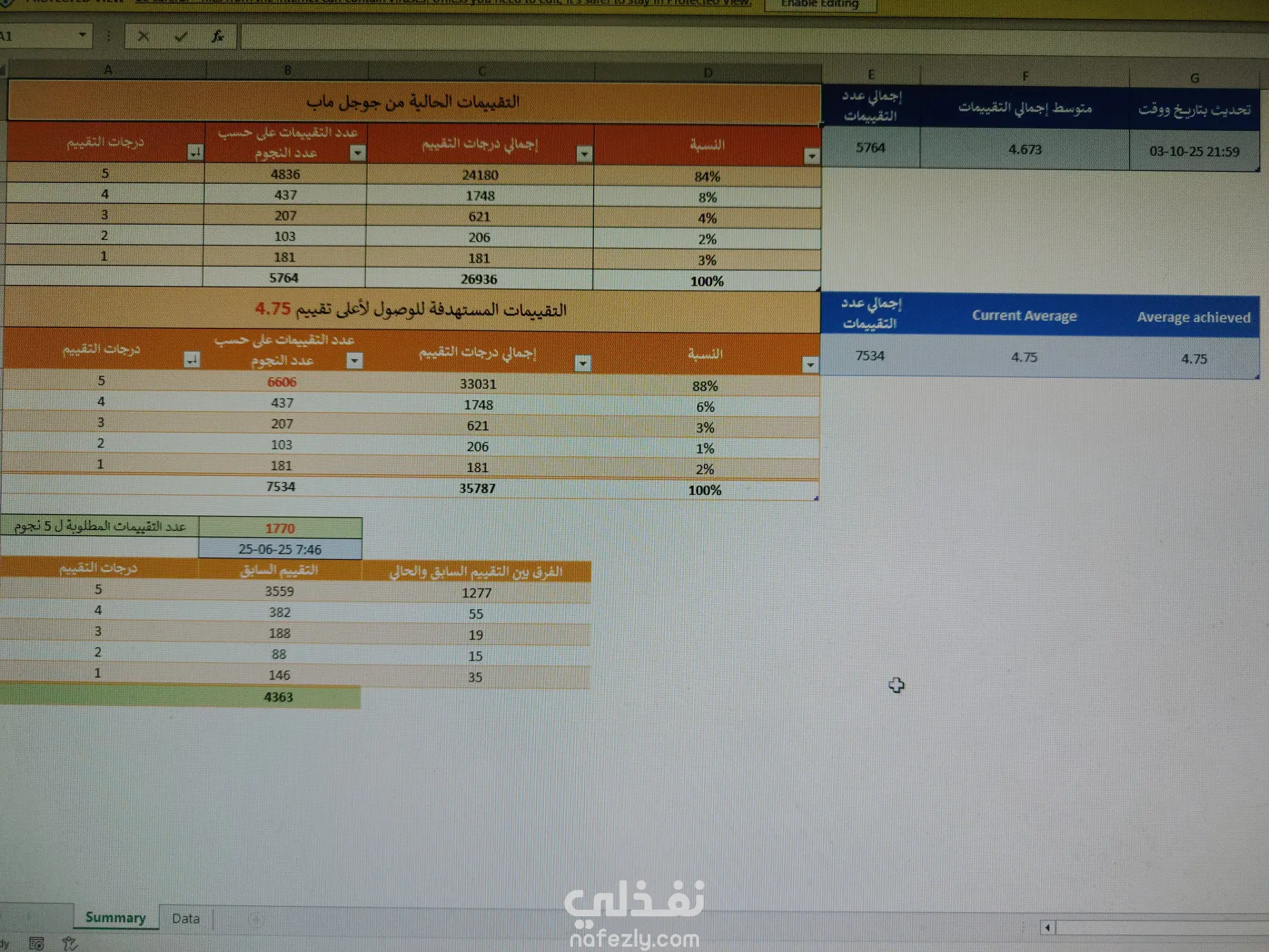 يتم استخراج تقييمات لموقع ما في ملف اكسيل وعمل تقرير بالتقييم الحالي وعمل معادلة تحقيق هدف لتقييم معين