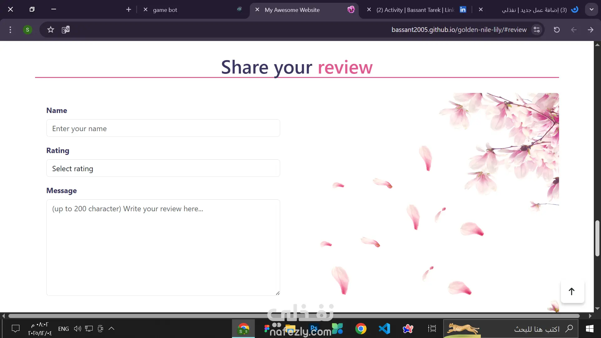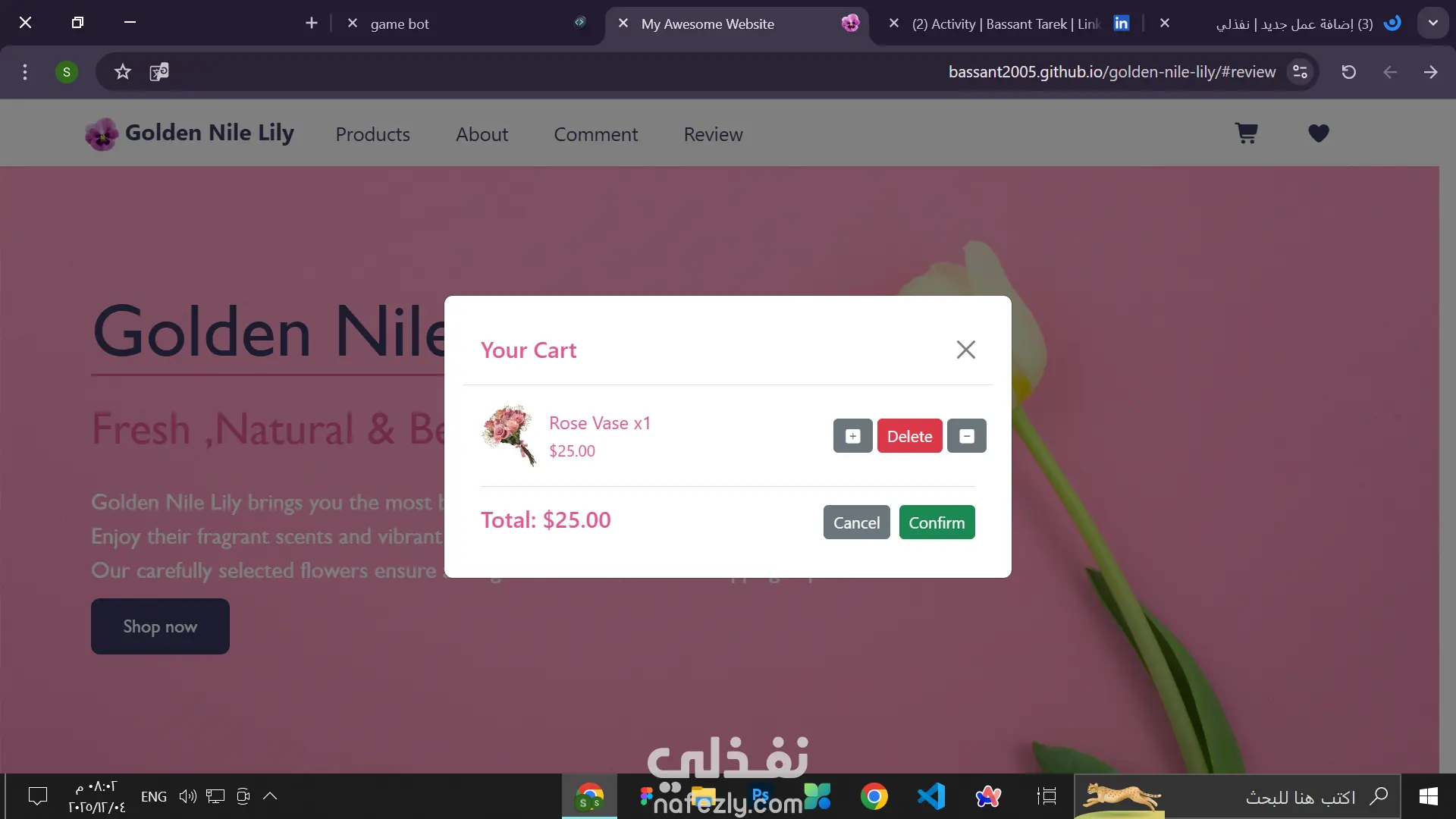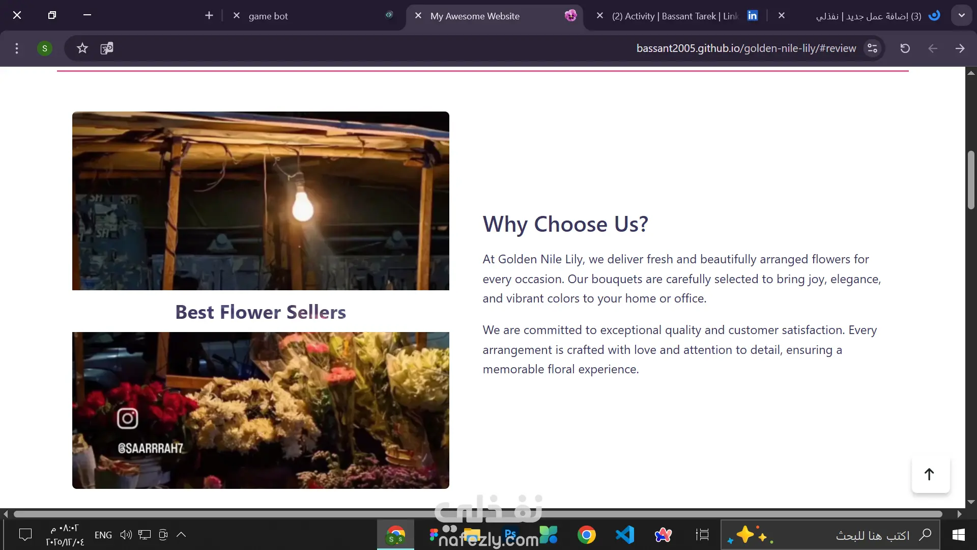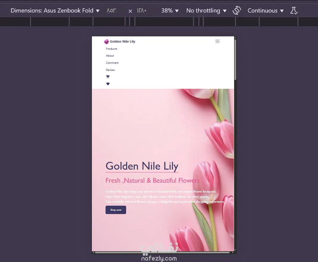 It's a simulation of an online flower shop, built as a front-end (HTML, CSS, JS, and Bootstrap) project, and was a training project inspired by a YouTube video.
