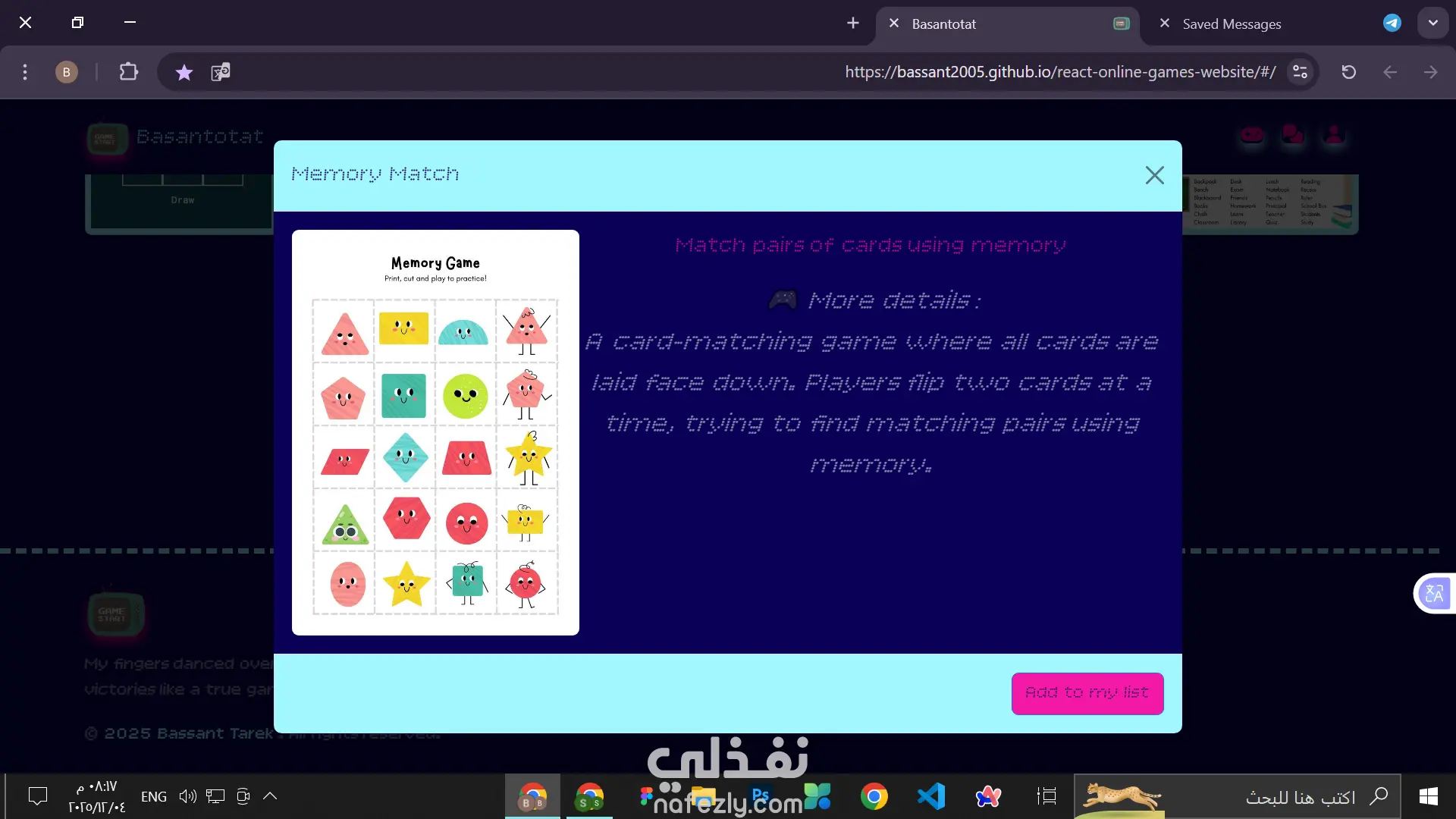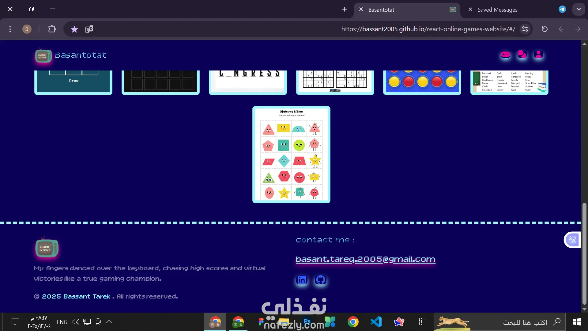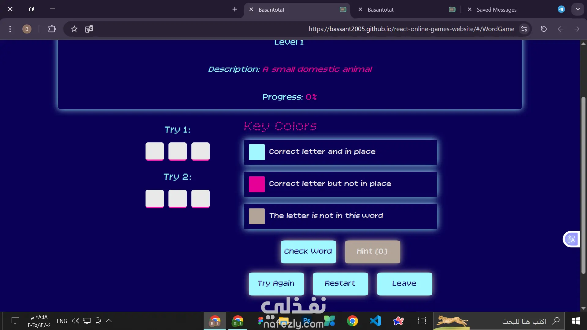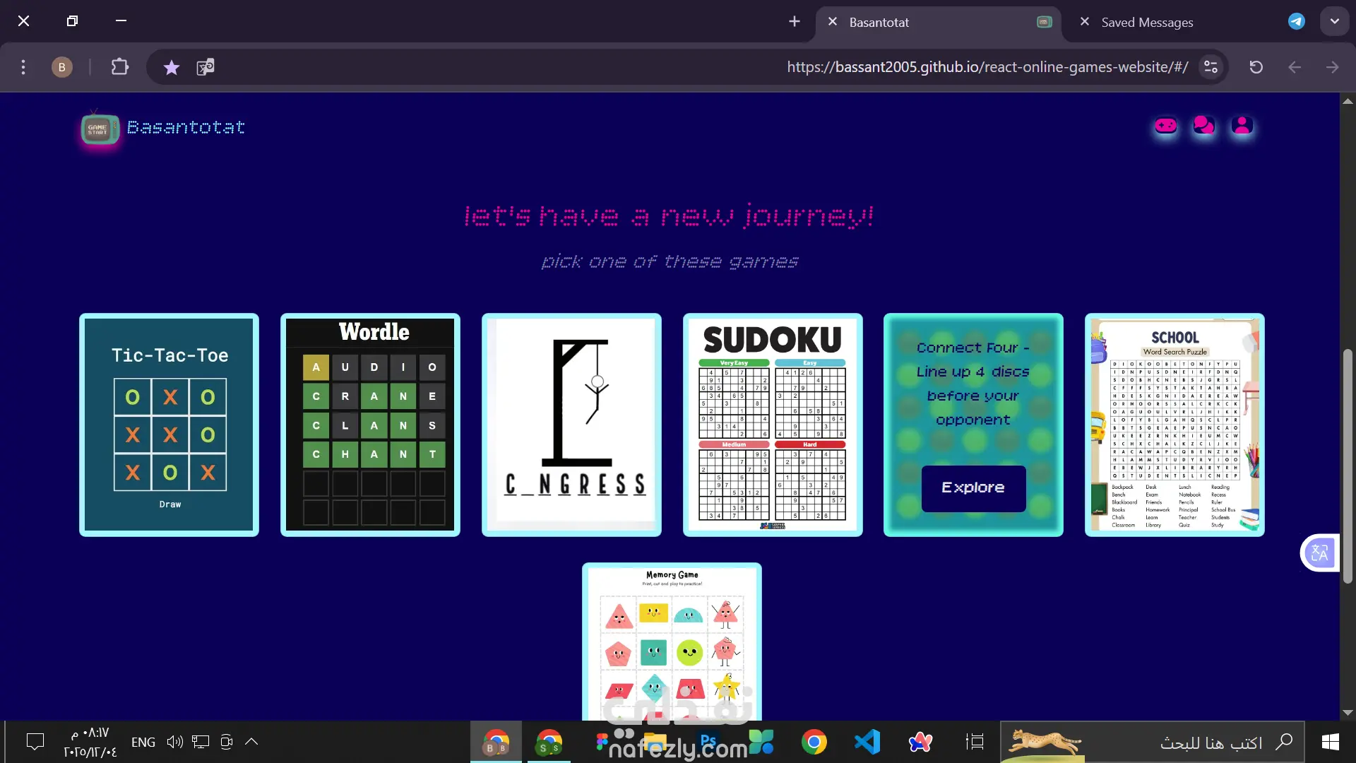 online games website that have 2 active games (words game and tic tac toe) each have number of levels to complete and your progress will be saved in the local storage