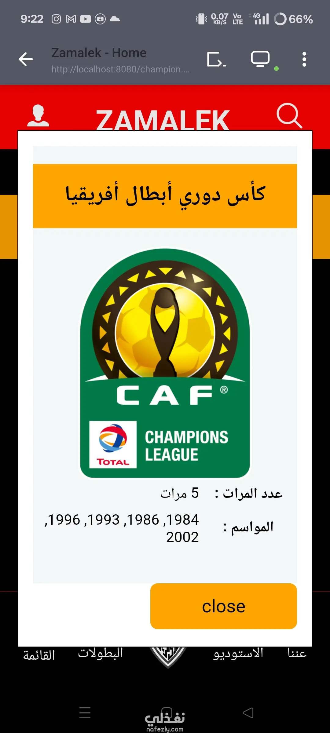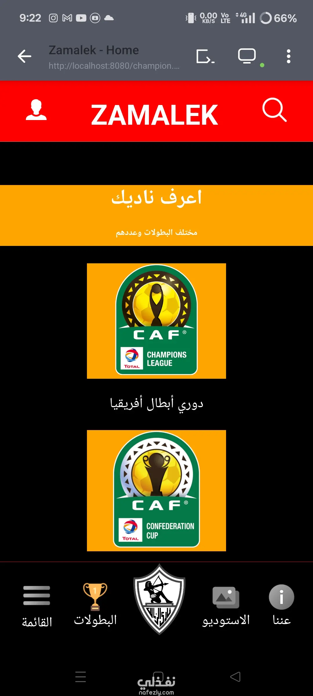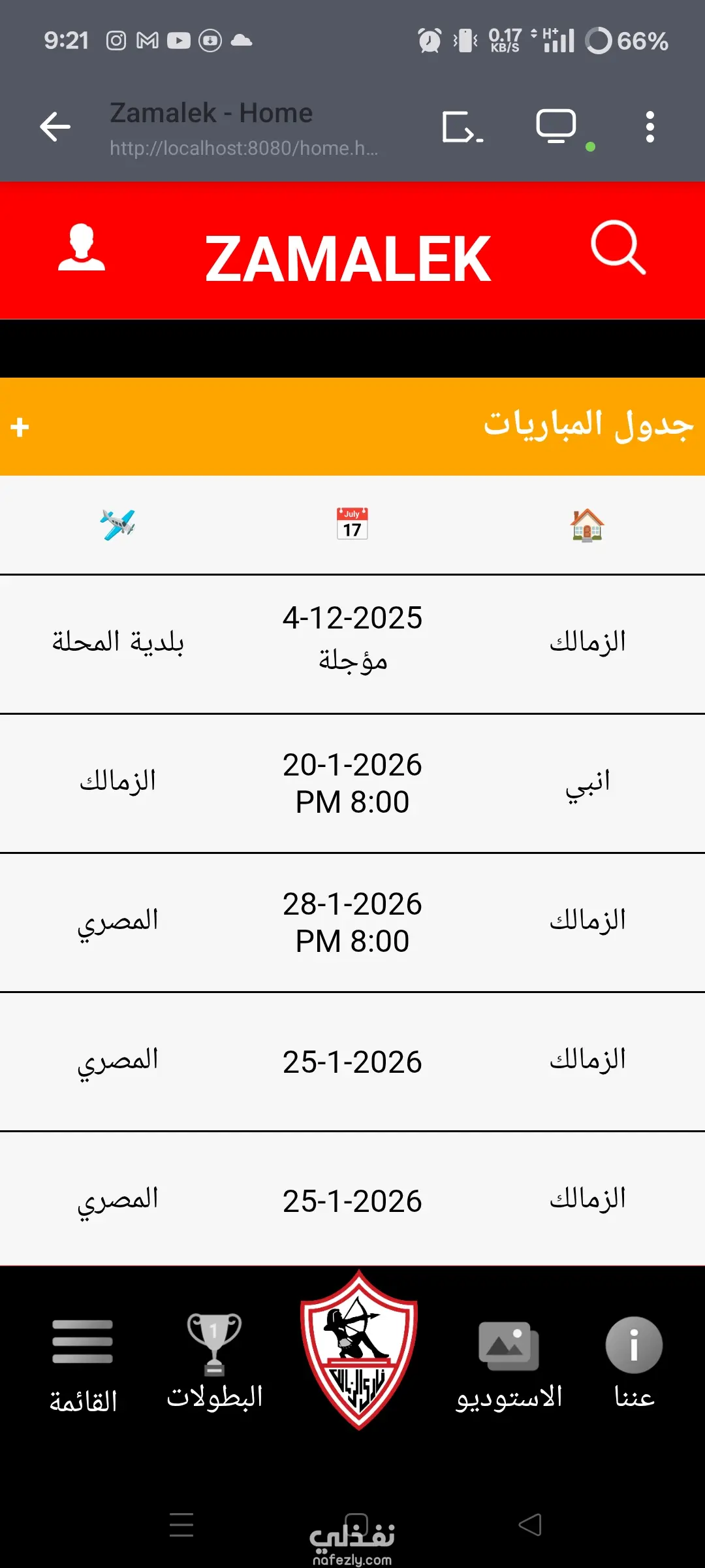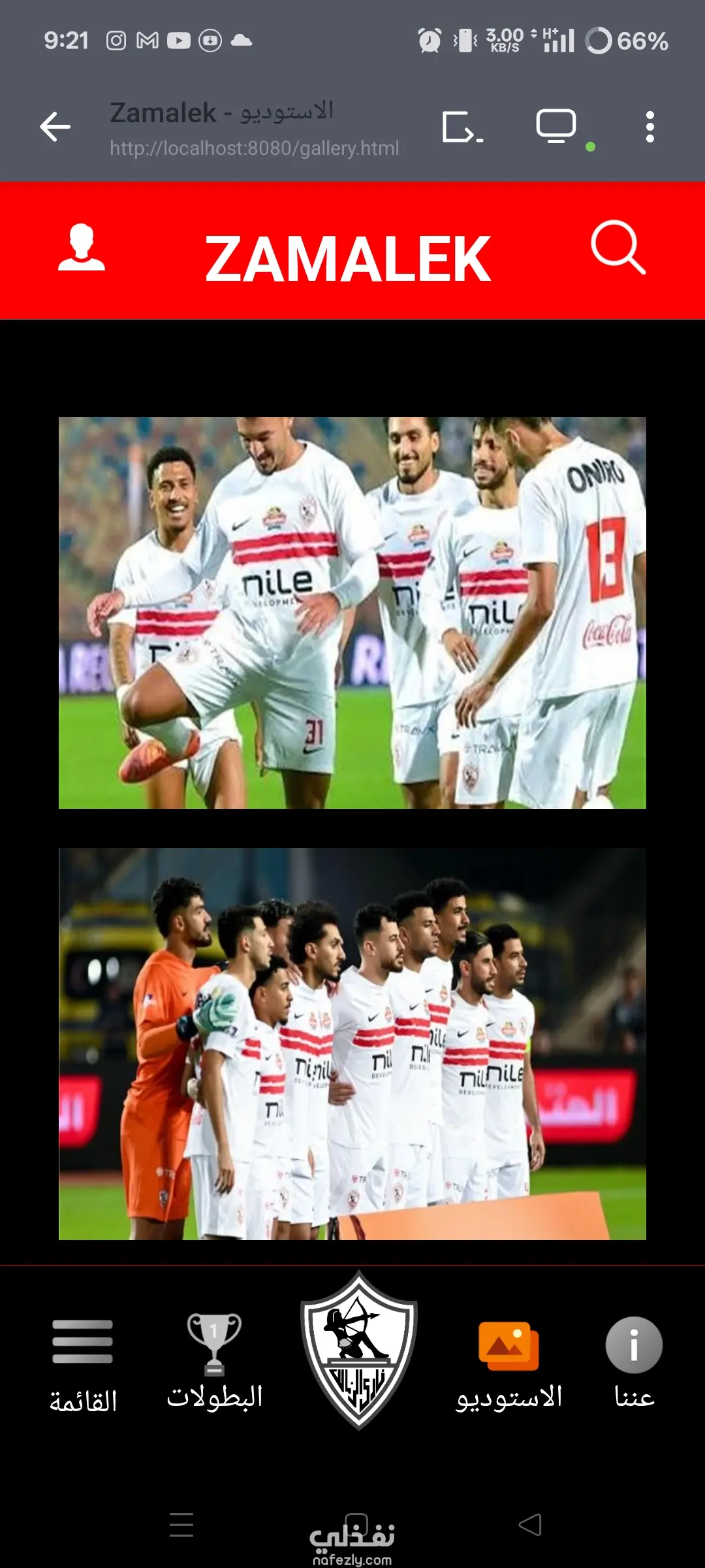 موقع رياضي يعرض اخبار النادي أو اخبار رياضية عامة ومعرض صور وبطولات ونتائج ومواعيد المباريات