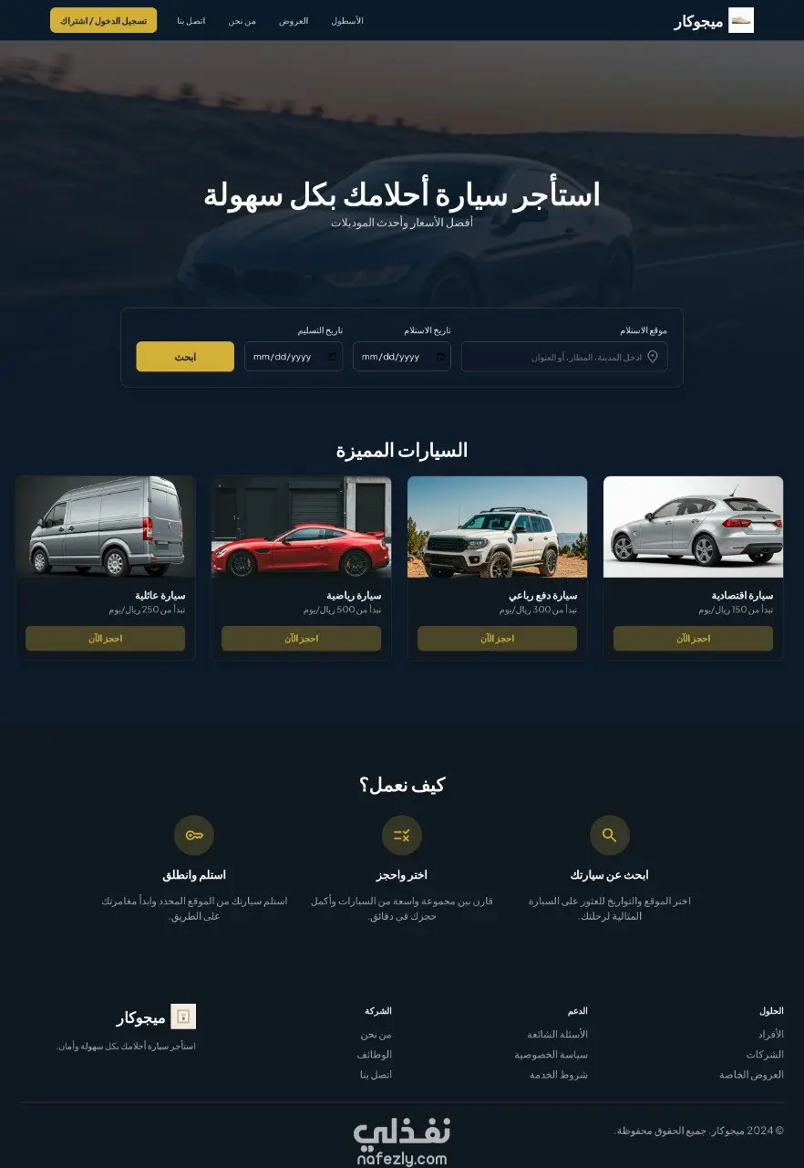 تصميم جميل وجذاب لمنصه تأجير السيارات كامل به جميع الخدمات المتاحه