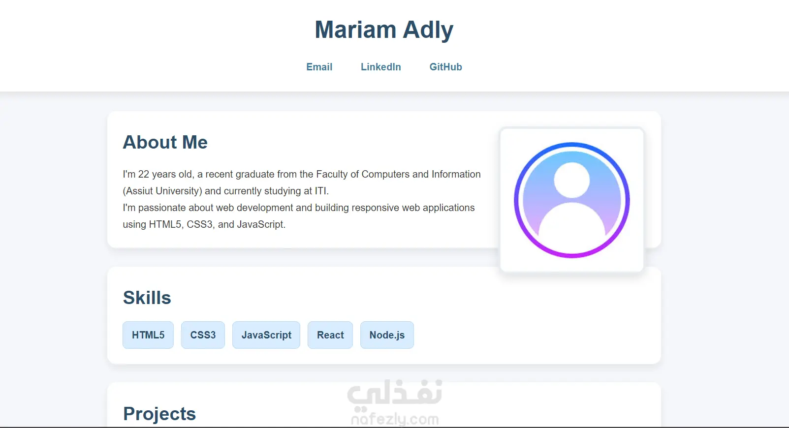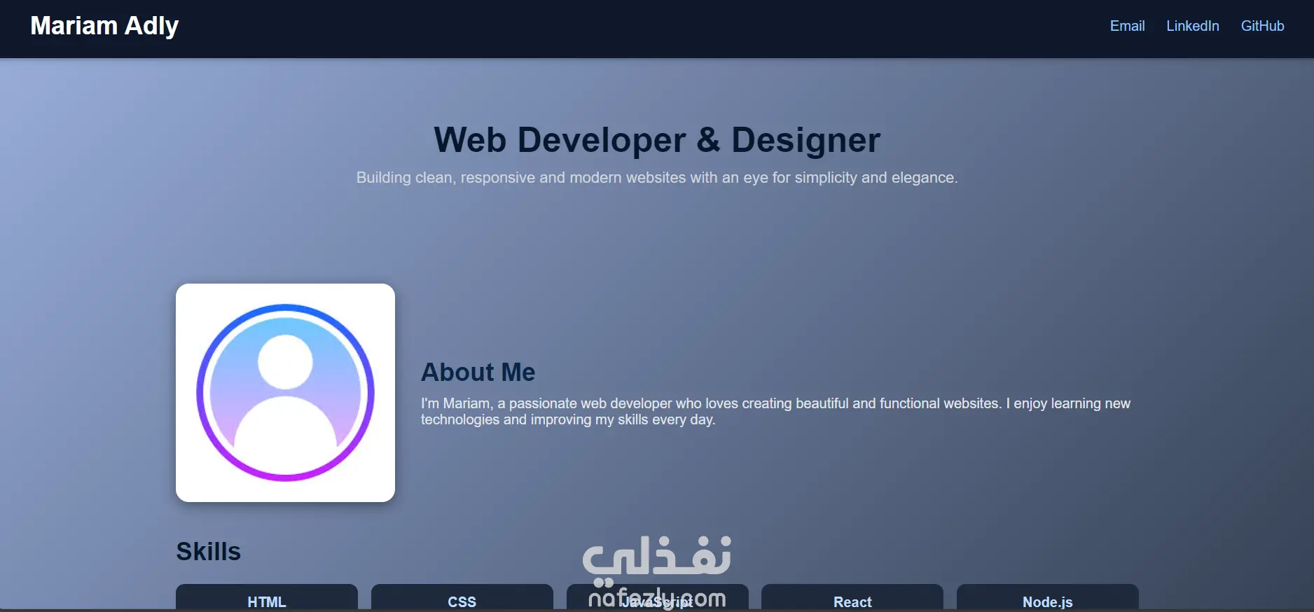 قمتُ بتصميم وتطوير موقع شخصي (Portfolio) يعرض المعلومات الأساسية والخبرات والمهارات بطريقة منظمة وجذابة.