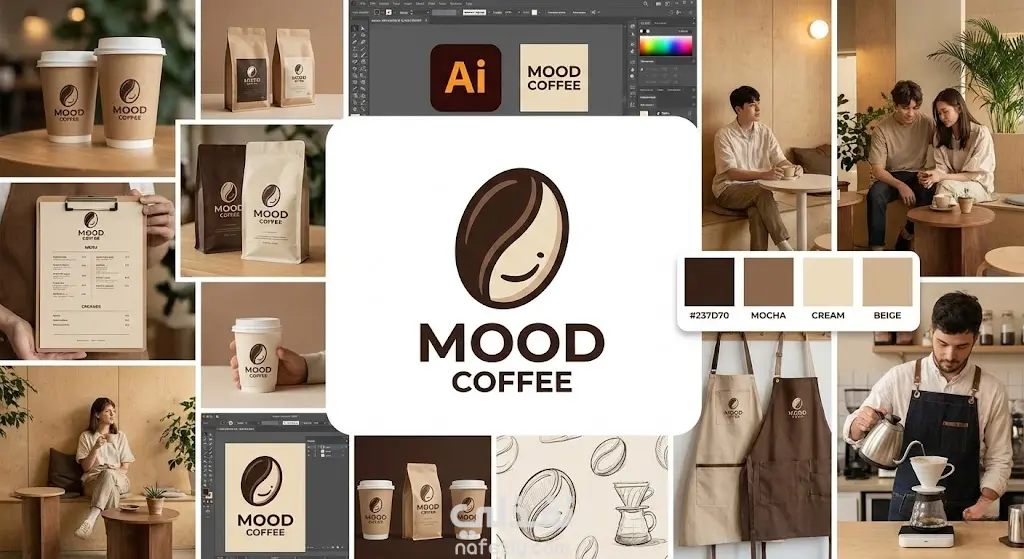 النتيجة: تم تسليم العميل الشعار بعدة صيغ (الملون، الأبيض والأسود) مع تصور لكيفية ظهوره على أكواب القهوة والأكياس.