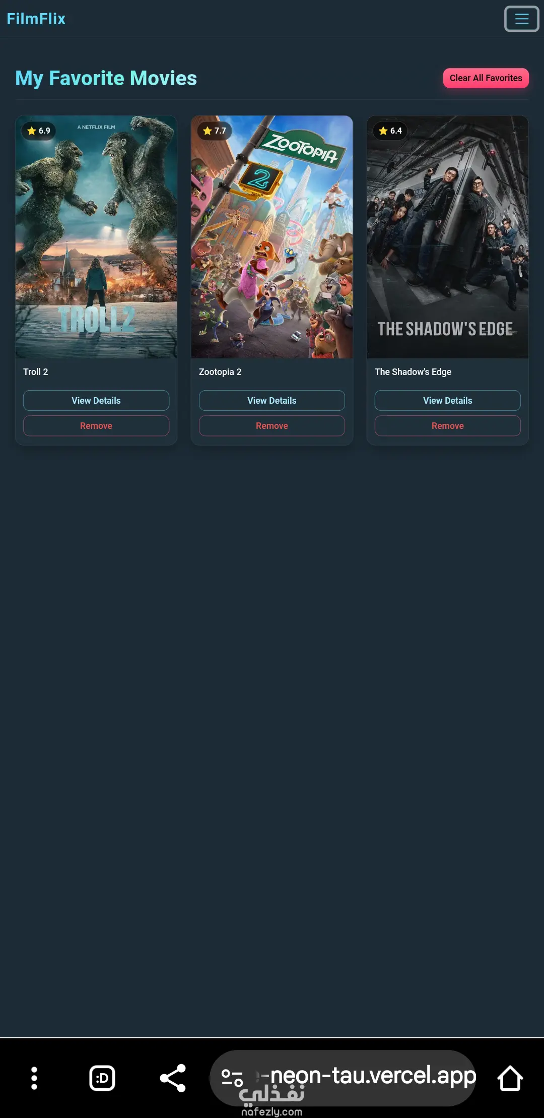 A responsive movie browsing website built with React and Redux. This application allows users to discover movies from The Movie Database (TMDb) API, search for specific titles, view detailed information, and manage a personal list of favorite movies.