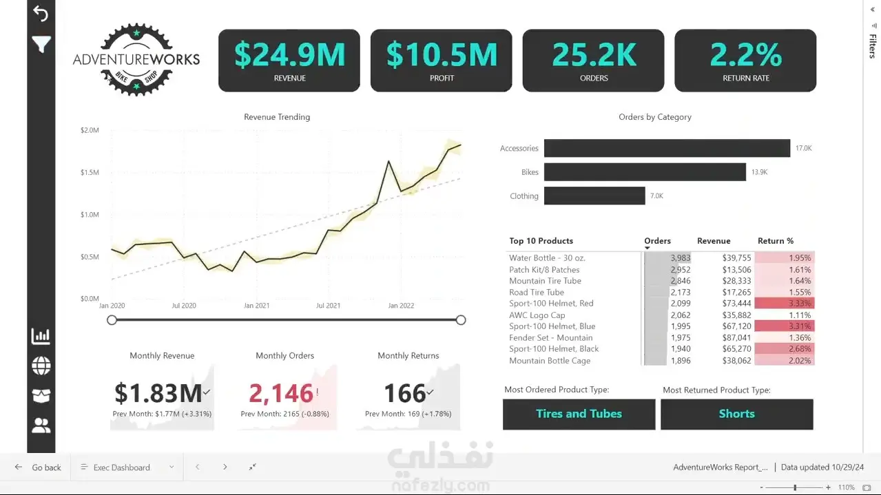 داش بورد داتا Adventure works بواسطة برنامج صPowerbi