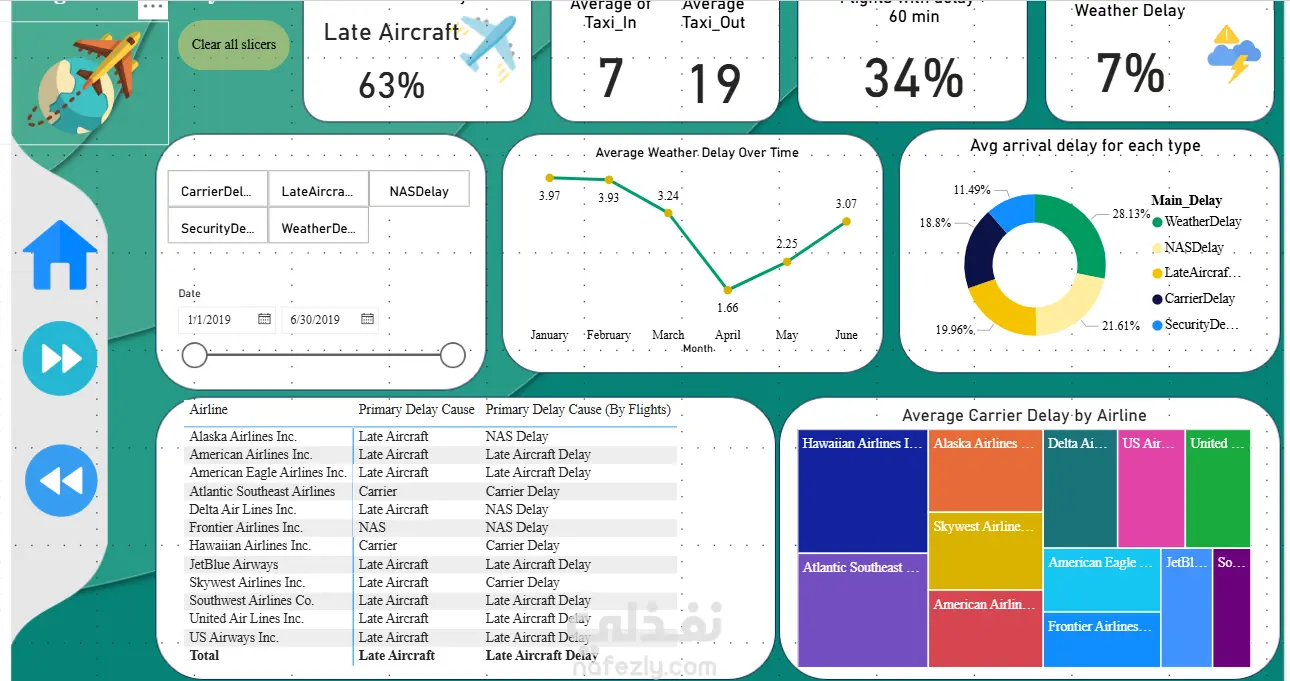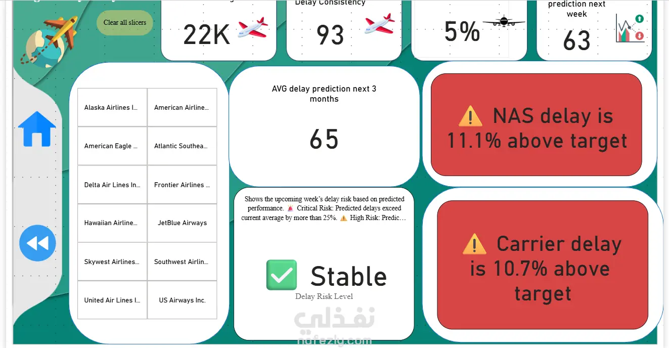 تحليل احترافي لتاخير خطوط الطيران powerbi