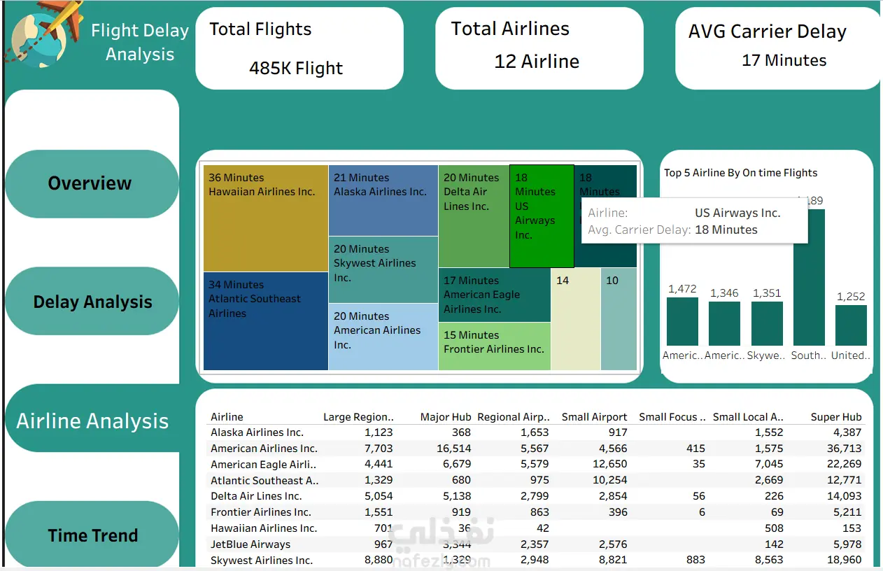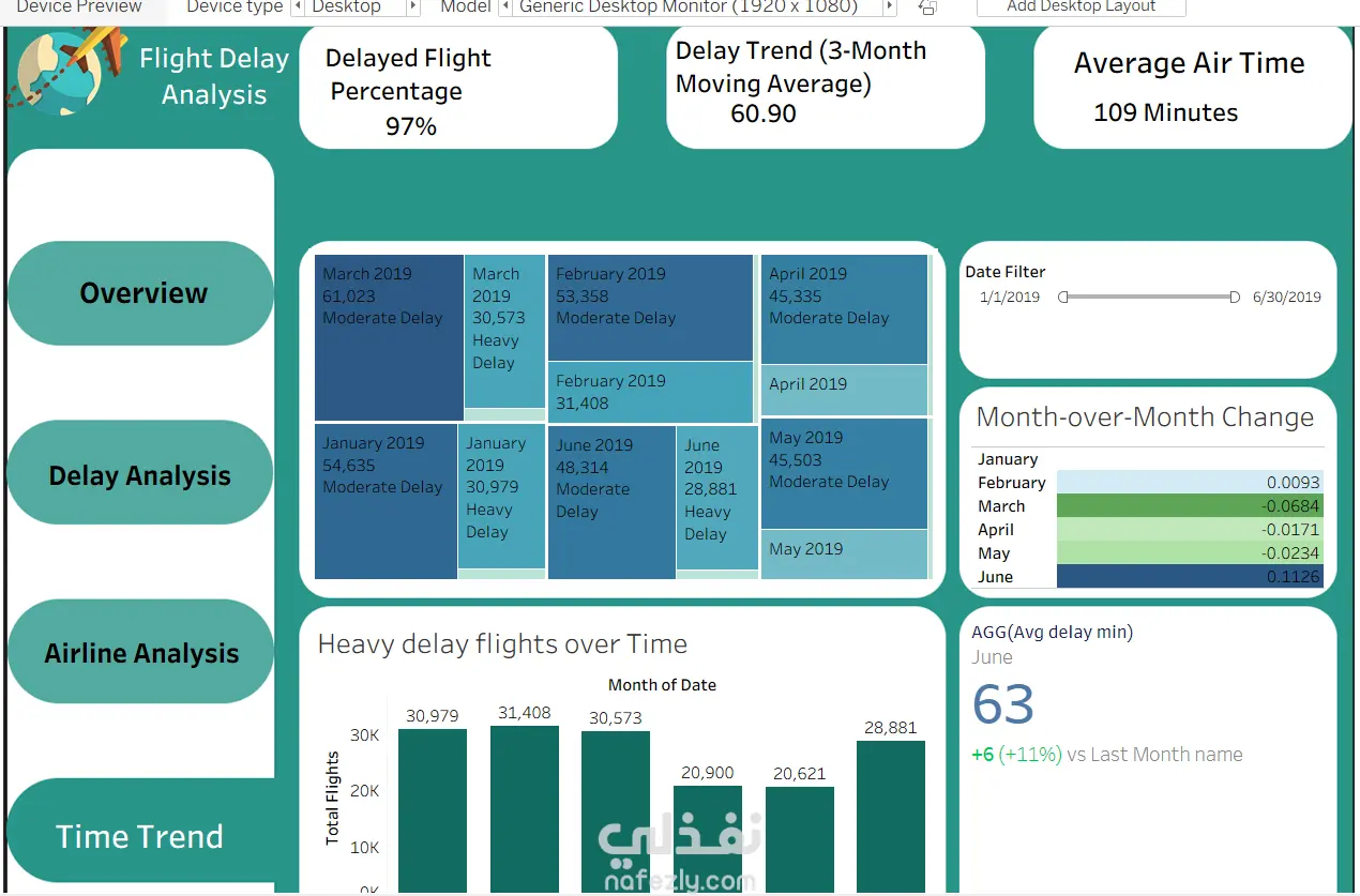 أقدّم خدمة تحليل بيانات خطوط الطيران باستخدام Tableau، من خلال إنشاء لوحات تفاعلية توضح معدلات التأخير، الإلغاء، أداء الرحلات، وأوقات الذروة. أعتمد على أفضل ممارسات تحليل البيانات لعرض الأنماط والعلاقات بطريقة بصرية تساعد في فهم أسباب المشكلات وتحسين كفاءة التشغيل واتخاذ القرارات بناءً على بيانات دقيقة وواضحة.