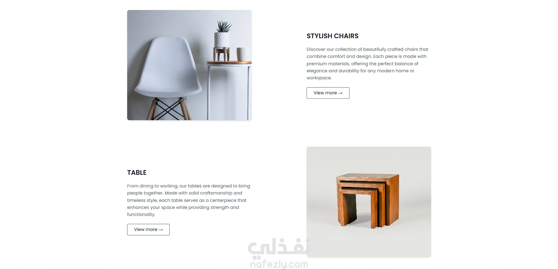 متجر لإلكتروني متكامل لعرض وبيع أثاث المنازل تم تطويره باستخدام React, TailwindCSS, Node.js, ExpressJs, MongoDB المميزات: صفحة رئيسية متعددة الأقسام لجذي انتباه الزوار صفحة عرض للمنتجات قابل للفلترة حسب التصنيف خاصية بحث عن المنتج حسب الاسم او الوصف صفحة عرض لتفاصيل المنتج تسجيل دخول وخروج وصفحة شخصية لكل مشترك تكامل مع stripe للدفع ببطاقة الائتمان تصميم عصري عالي حسب المعايير العالمية متجاوب مع جميع الأجهزة والشاشات كود منظم وسهل التطوير عليه لاحقا