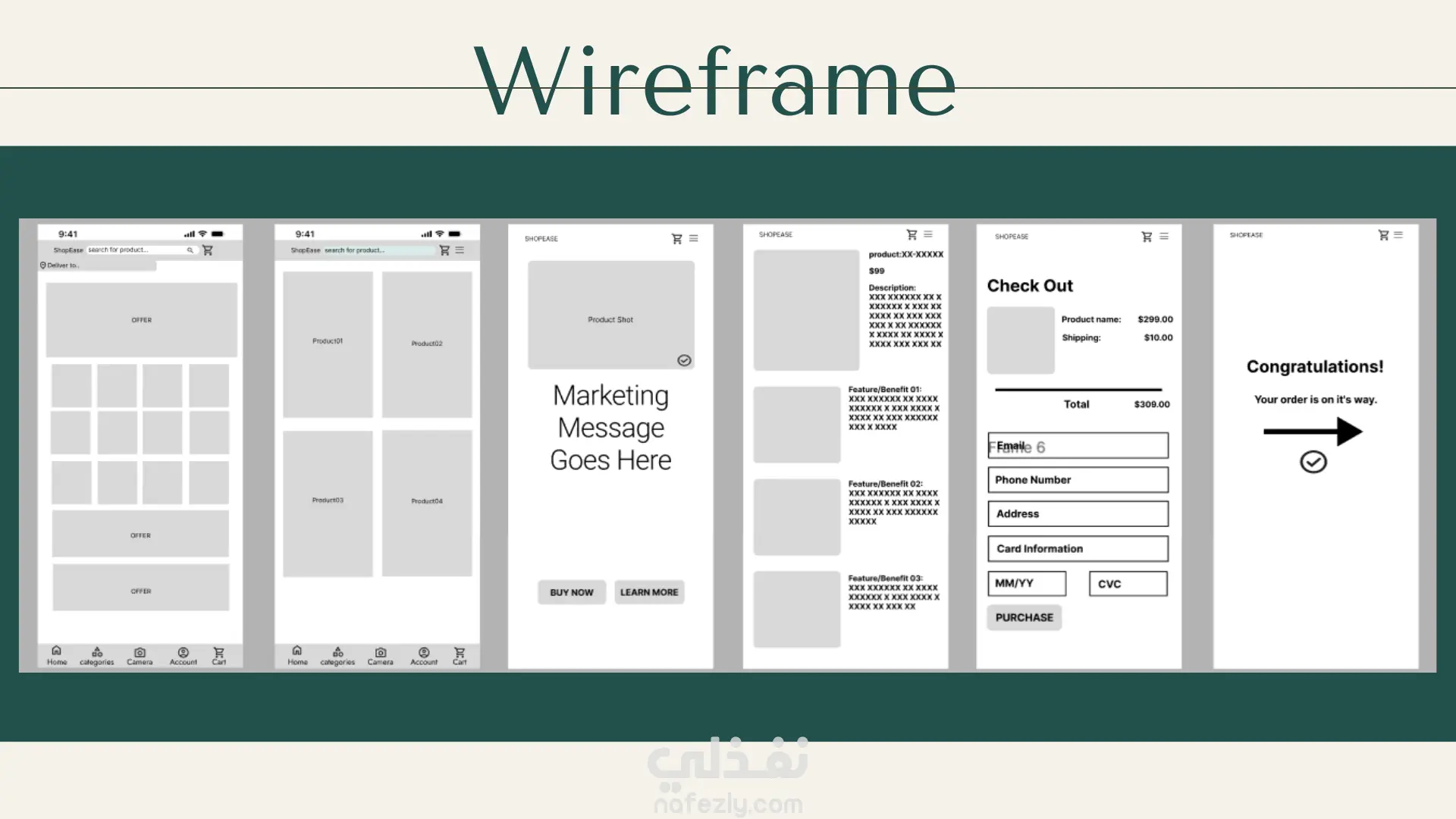 تصميم شامل لتجربة المستخدم لتطبيق تجارة إلكترونية حديث وسهل الاستخدام. الهدف الرئيسي هو تحسين تجربة المستخدم من لحظة اكتشافه للمنتج حتى إتمام عملية الشراء.