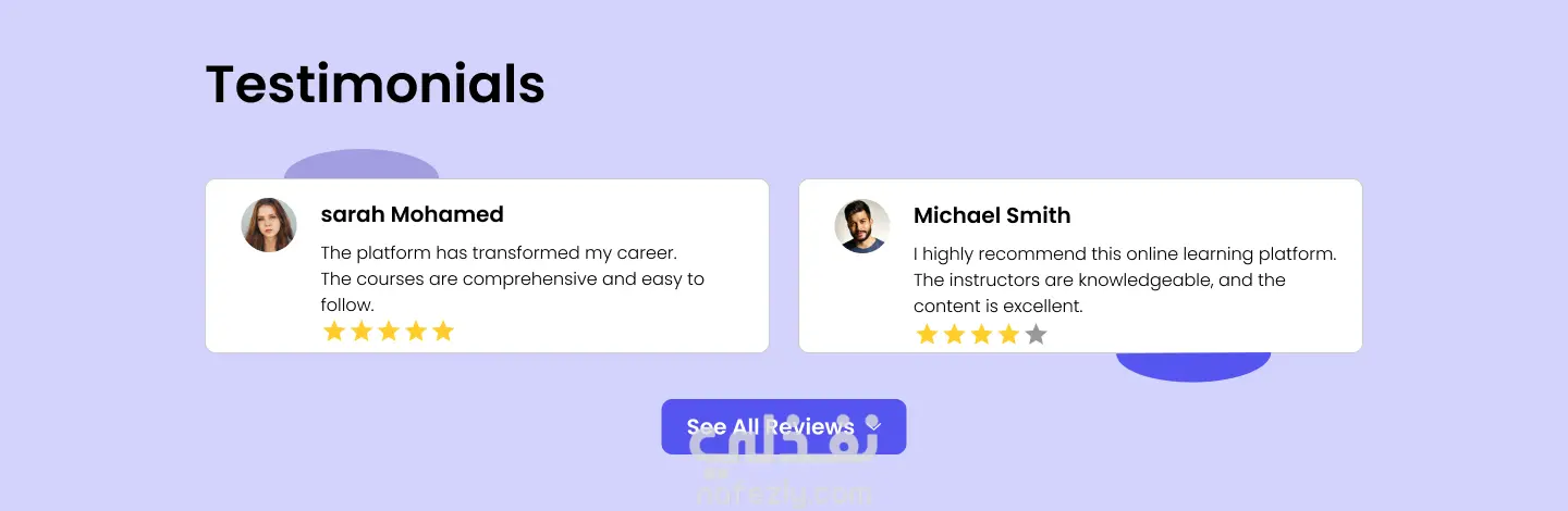 تصميم صفحة هبوط حديثة لمنصة تعليمية أونلاين بهدف جذب الطلاب وتعريفهم بالخدمات والدورات المتاحة. يشمل التصميم: – هيدر واضح مع شعار المنصة وCTA للتسجيل – عرض مميزات المنصة والدورات – قسم "كيف تعمل" (How it Works) لتوضيح خطوات التسجيل والتعلم – قسم Testimonials لآراء الطلاب – تصميم فوتر احترافي يحتوي على معلومات التواصل وروابط مهمة تم تصميم الصفحة باستخدام Figma مع التركيز على تجربة المستخدم، ترتيب المحتوى، والألوان الجذابة.
