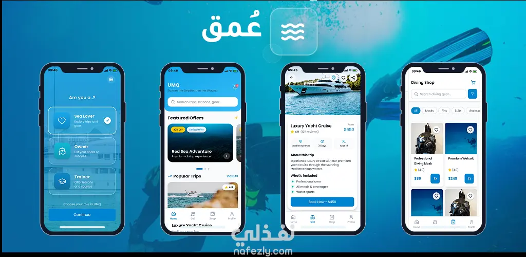 عمق هو تطبيق متكامل خاص بكل ما يخص عالم البحر والأنشطة البحرية في مكان واحد. من تجربة الرحلات البحرية، وحتى احتراف الغطس… من التسوق، إلى التدريب الأكاديمي. تطبيق مصمم ليخدم: •الهواة •المحترفين •شركات الرحلات •مراكز الغوص •عشاق البحر والمغامرات ماذا يوفر تطبيق عمق؟ حجز الرحلات البحرية •استعراض الرحلات البحرية المتاحة •اختيار الموقع والتاريخ •الحجز المباشر والدفع بسهولة •تفاصيل الرحلة بالكامل (المدة – القارب – الأنشطة) ? الغوص والأنشطة البحرية •حجز جلسات غوص •اكتشاف أماكن الغوص •برامج للمبتدئين والمحترفين •تفاصيل المعدات المطلوبة •تقييمات وتجارب المستخدمين تأجير يخوت ومراكب •اختيار نوع المركب •معرفة الأسعار •تحديد المدة •الحجز بطريقة ذكية وآمنة متجر بحري متكامل يضم: •أدوات الغطس •معدات بحرية •ملابس وإكسسوارات •قطع غيار •منتجات أصلية مع ضمان الجودة أكاديمية عمق البحرية تعلم بشكل احترافي من خلال: •فيديوهات تعليمية •دروس مترجمة •كورسات غوص •شرح المعدات •أساسيات البحر والسلامة •تدريب على يد مدربين محترفين مميزات تقنية داخل التطبيق نظام مستخدمين كامل حجز – إشعارات – أكاديمية متجر متكامل نظام تقييم لوحة تحكم API قوي ومرن أداء عالي وأمان في البيانا الباك إند تم تصميمه وتنفيذه كنظام API احترافي قابل للتوسع وربط مع الموبايل أب بكل سهولة. مع هيكلة نظيفة، ومرونة عالية في التحكم في الحجوزات، الأكاديمية، الطلبات، والمستخدمين