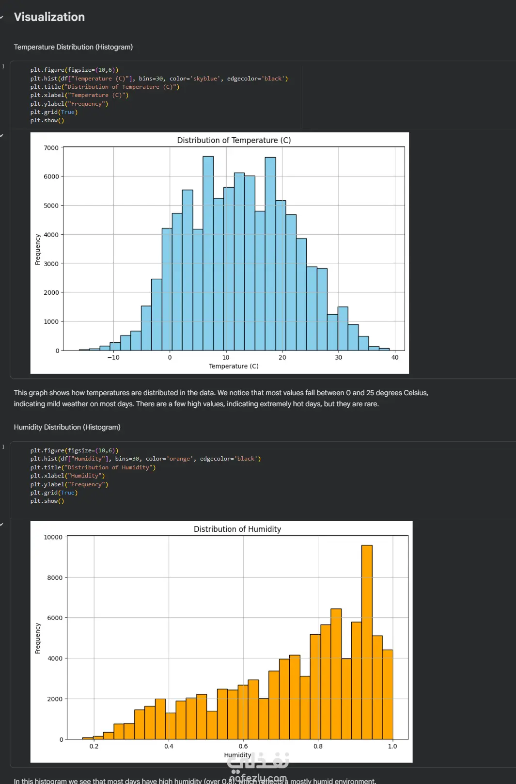 تم العمل على تنظيف البيانات ومعالجتها، ثم تحليل التقلبات الحرارية والأنماط الموسمية، بالإضافة إلى إنشاء رسومات بيانية توضيحية تساعد على تفسير نتائج التحليل بصورة سهلة وواضحة.