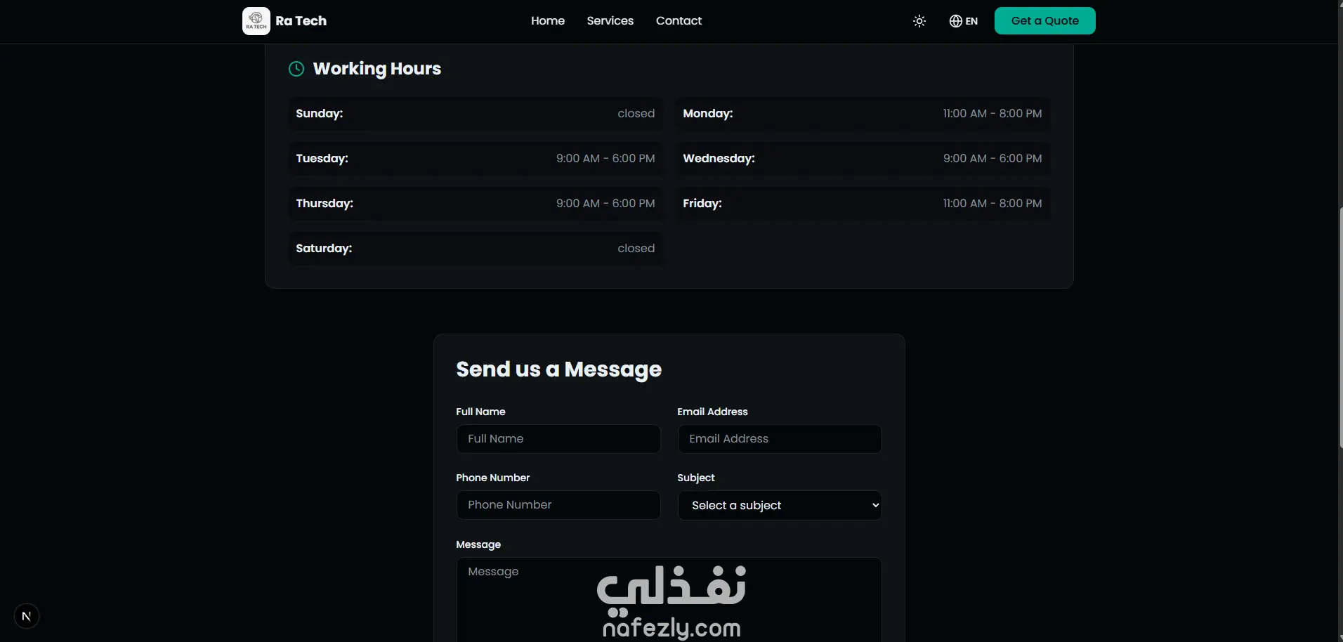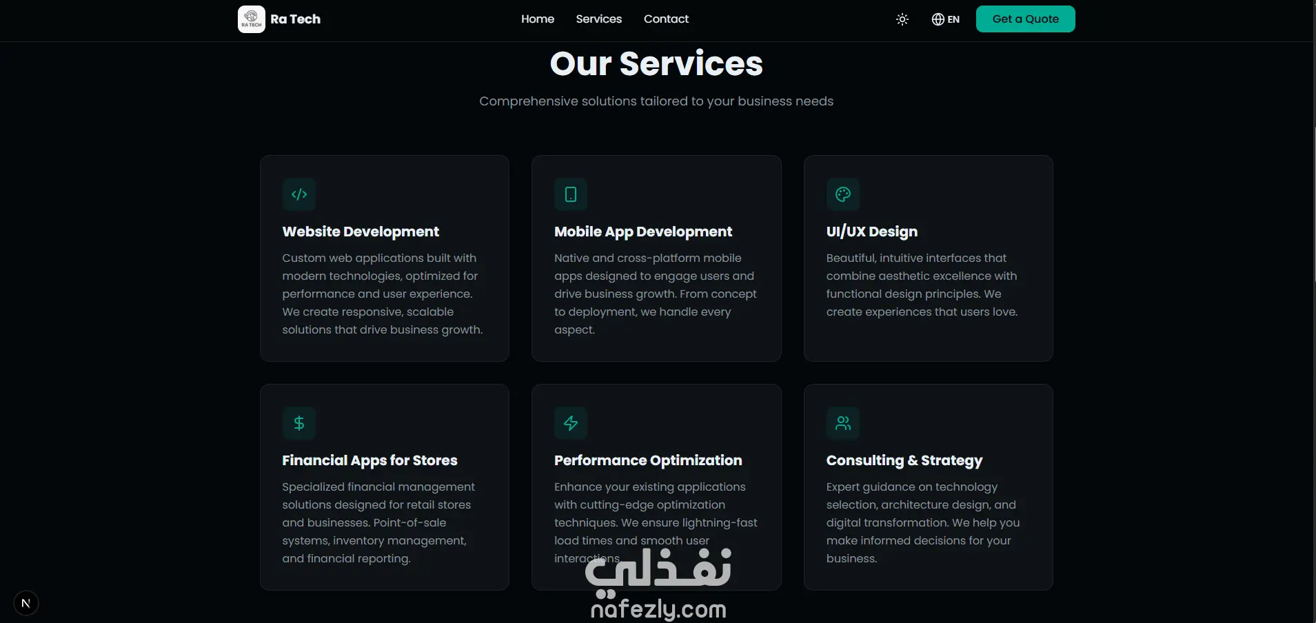 تم التركيز على الأداء، التجاوب الكامل مع مختلف الأجهزة، وتجربة مستخدم احترافية تعكس هوية شركة تقنية راقية.