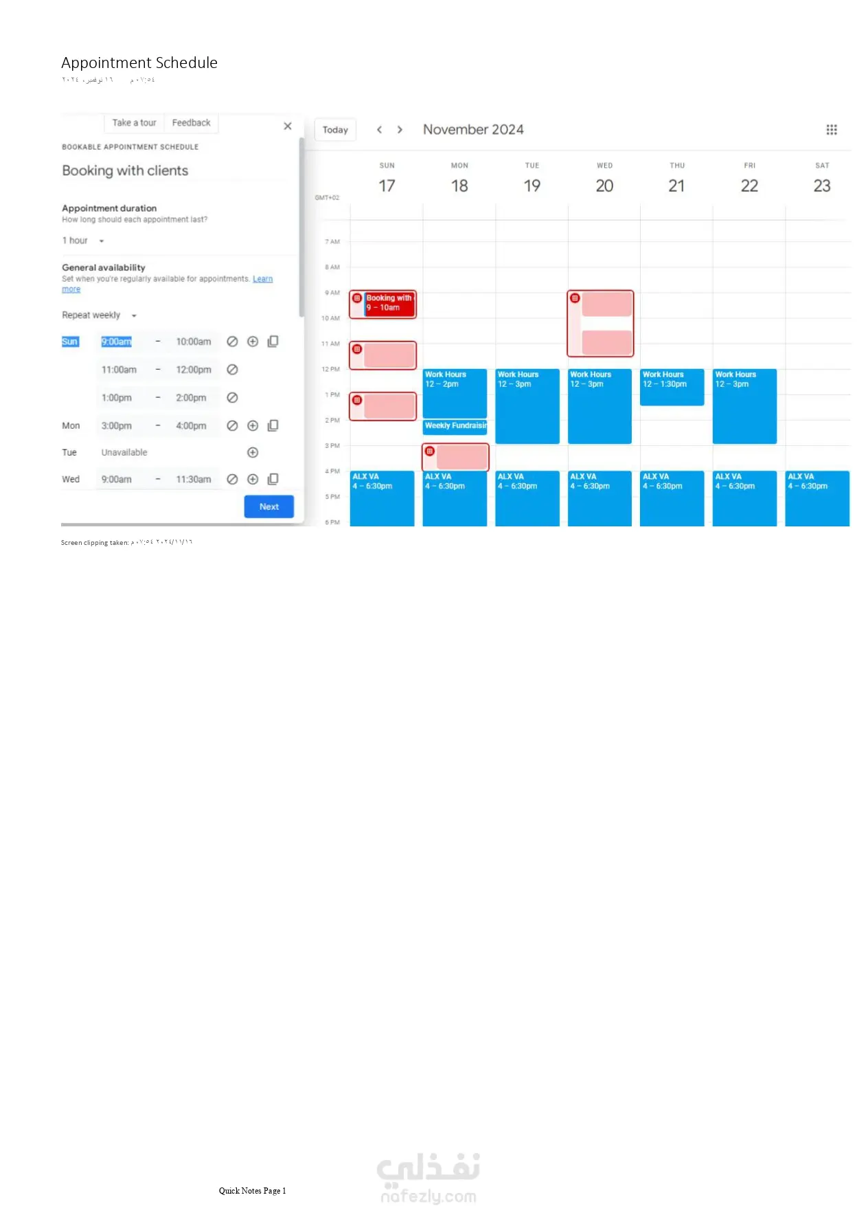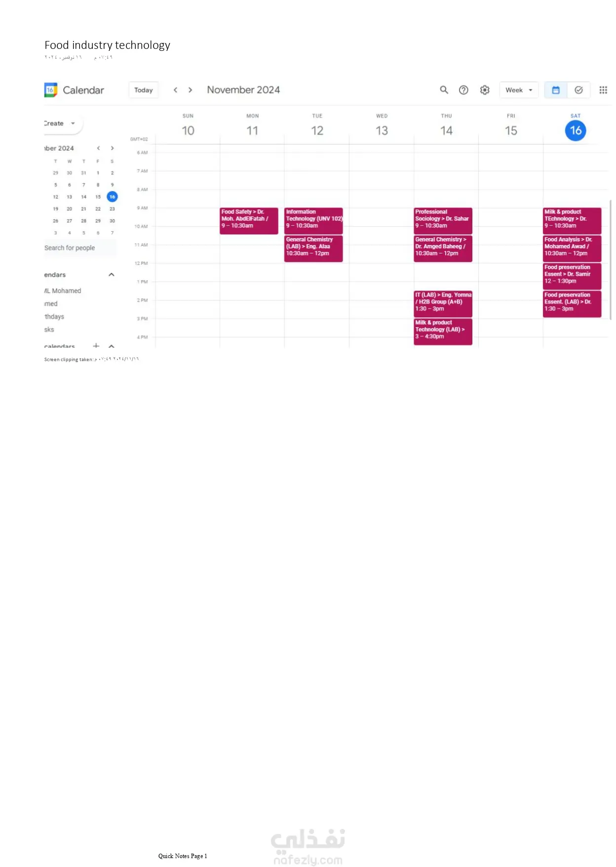 إدارة التقويم للعميل إدارة جدول المحاضرات: تنظيم جدول محاضرات لطالب جامعي (تم منحي حق الوصول للحساب الخاص بالعميل). تم تنظيم جدول المحاضرات علي التقويم الخاص بالعميل.