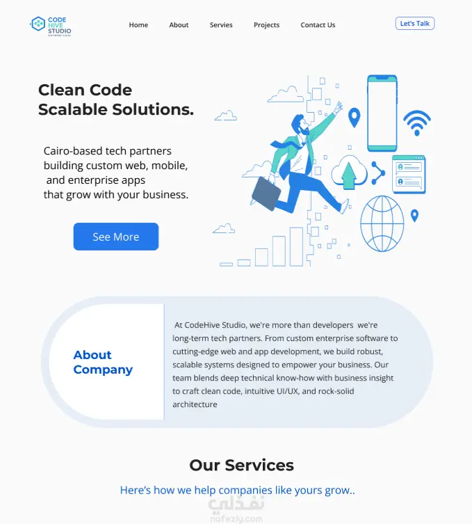تصميم وبرمجة موقع شركة احترافي متكامل | Clean Code + UI/UX مميز