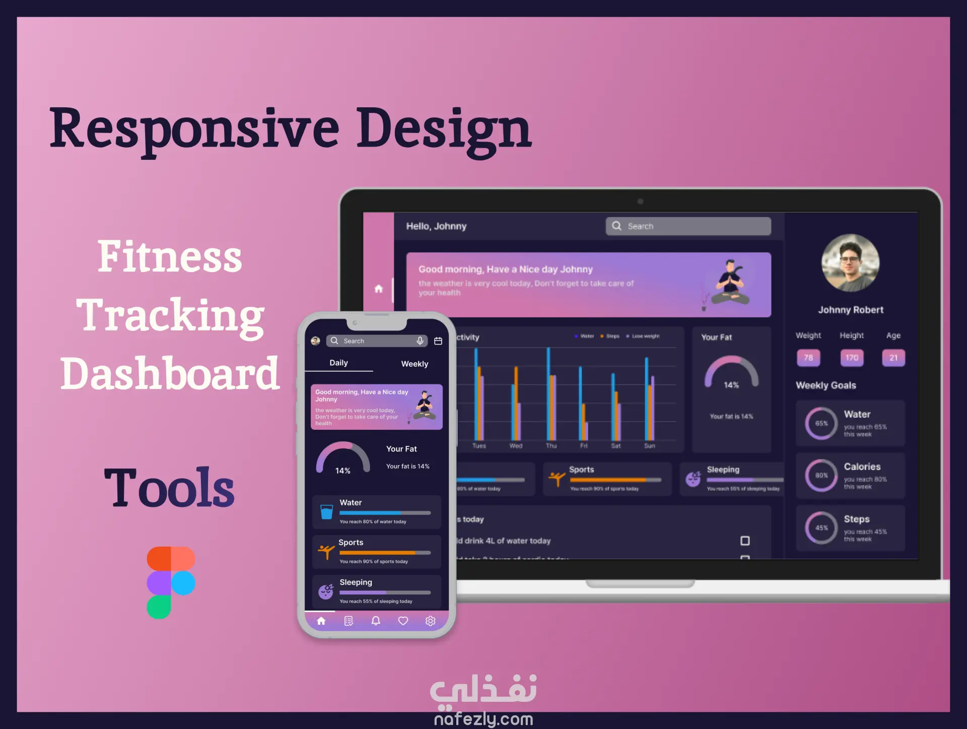 A responsive fitness tracking dashboard that allows users to monitor their daily health metrics through clear visuals and an intuitive layout