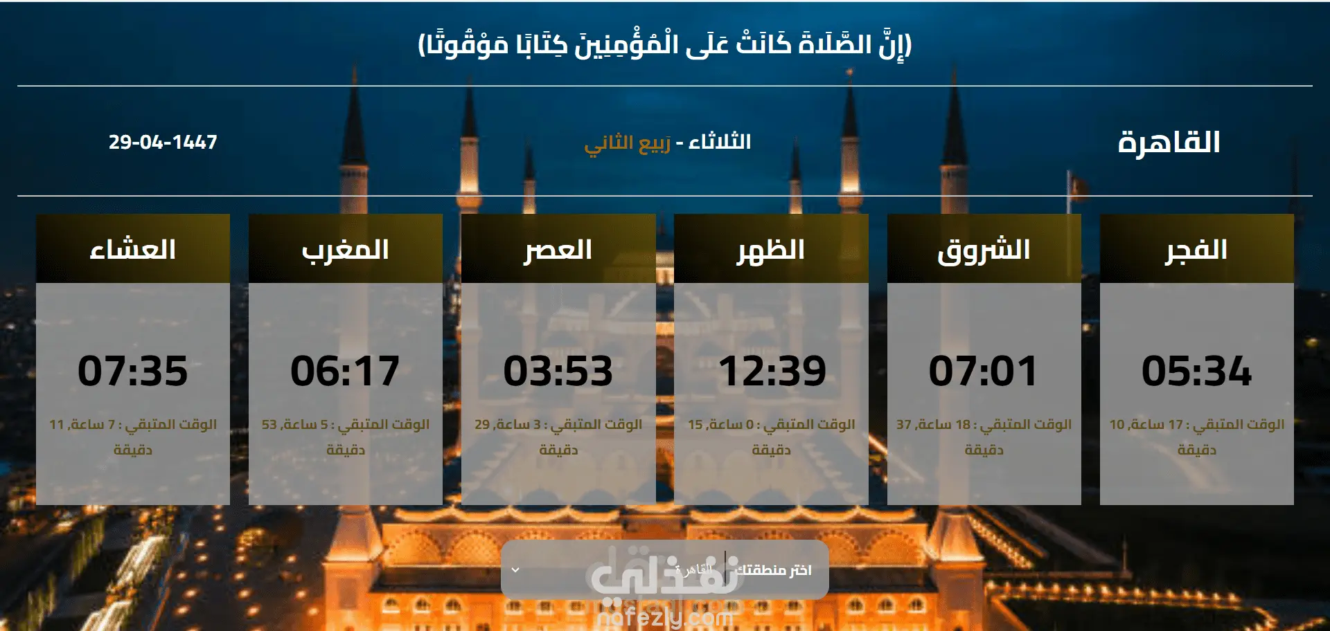 موقع لمعرفه اوقات الصلاه في مصر