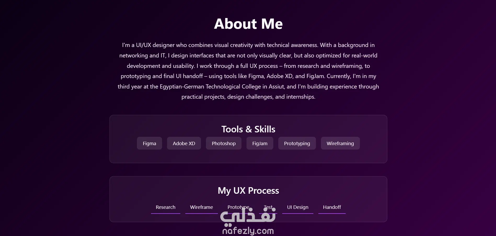 الموقع ده عبارة عن بورتفوليو شخصي عاملُه علشان يكون واجهة محترمة أقدر أقدم بيها نفسي وشغلي لأي عميل أو شركة. ركّزت فيه إن التصميم يكون بسيط وواضح، من غير تعقيد، لكن في نفس الوقت شكله نظيف ومرتب ويعكس أسلوبي في الشغل. استخدمت في تنفيذه HTML, CSS, JavaScript, Bootstrap، وكل جزء معمول بإيدي من الصفر، ومهتم إن الكود يكون خفيف وسهل التعديل، علشان لو في أي وقت حبيت أغير أي حاجة أو أضيف أقسام جديدة، الموضوع يكون سريع ومباشر. الميزة الأساسية في الموقع إنه متجاوب بالكامل؛ يعني سواء حد فتحه من موبايل، تابلت، لابتوب، أو شاشة كبيرة، هياخد نفس التجربة بدون ما يحصل أي لخبطة في التصميم أو المقاسات. وده جزء ركّزت فيه كويس لأن أغلب الناس بتتصفح من الموبايل. الموقع مقسّم لأجزاء واضحة: – قسم للتعريف بيا وبالمهارات اللي بشتغل عليها – قسم أعرض فيه المشاريع أو الشغل اللي عملته – قسم للخدمات اللي ممكن أقدمها – جزء للتواصل ولو أي عميل محتاج أقسام إضافية أو تعديل في الشكل أو الألوان، أقدر أعمل ده بسهولة لأن التصميم معمول بشكل مرن. الهدف من الموقع إنه يقدّم صورة واضحة عن شغلي ويخلي أي حد داخل عليه يعرف مستوايا وإيه الحاجات اللي أقدر أنفّذها، من غير ما يتوه أو يدوّر كتير.