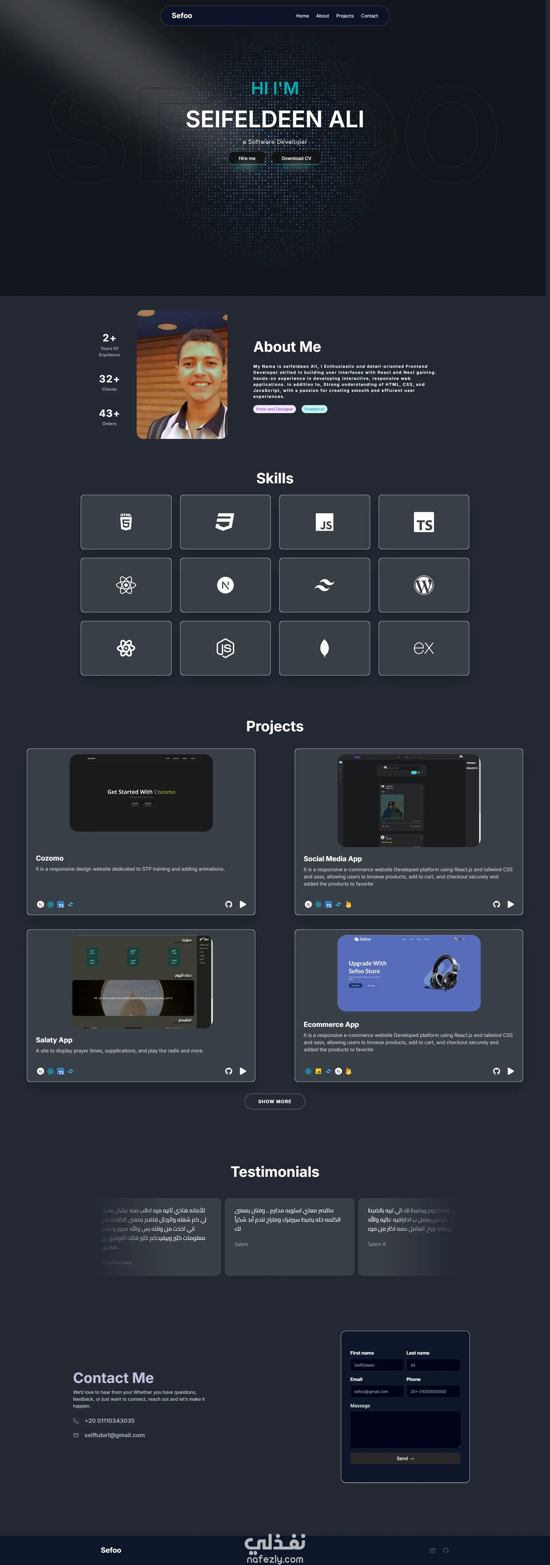 موقع اعمال شخصي بواسطة react.js / next.js / tailwind css